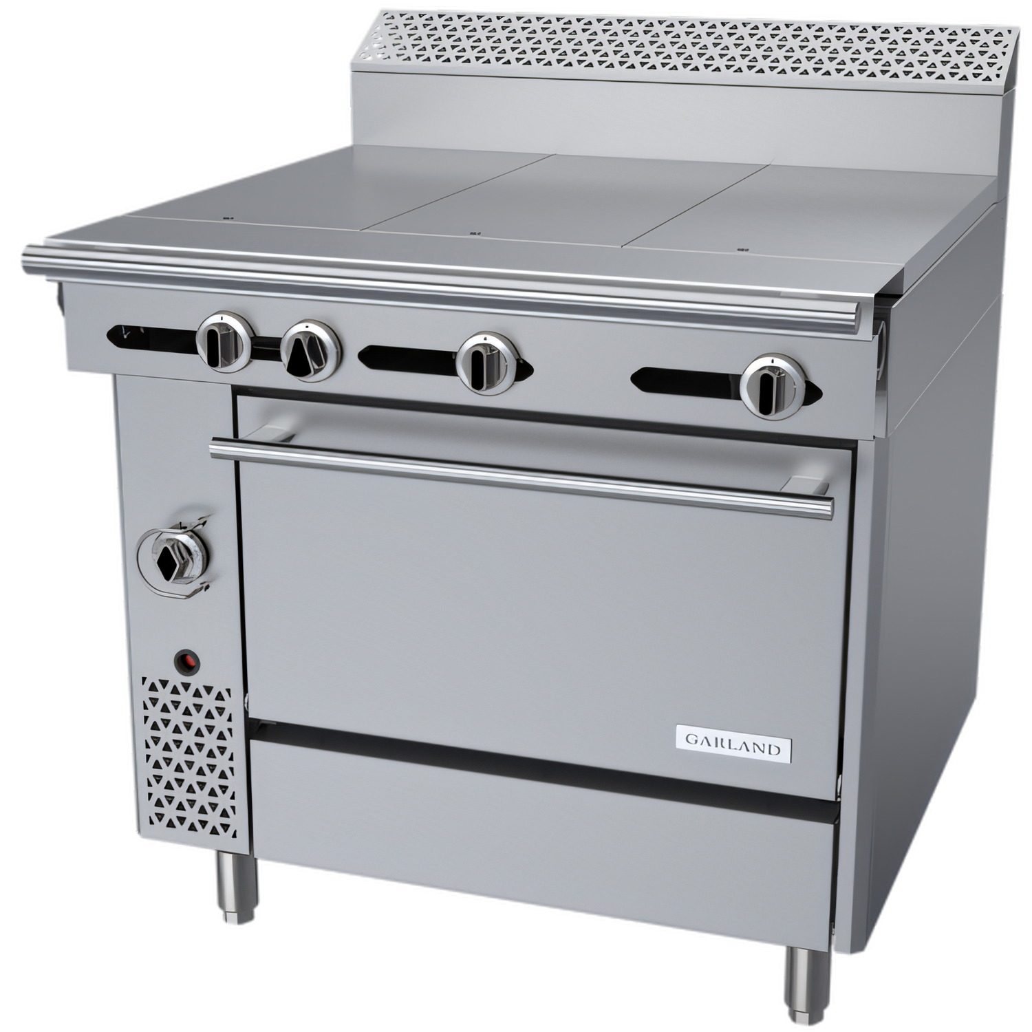 Model C36-8R | 115,000 BTU (Natural Gas)Built for relentless commercial schedules, the Garland C36-8R combines three powerful 12" Even-Heat hot tops with a full-size standard oven in a compact 36" footprint— giving chefs the steady, uniform heat they need for high-volume production and delicate simmering alike.