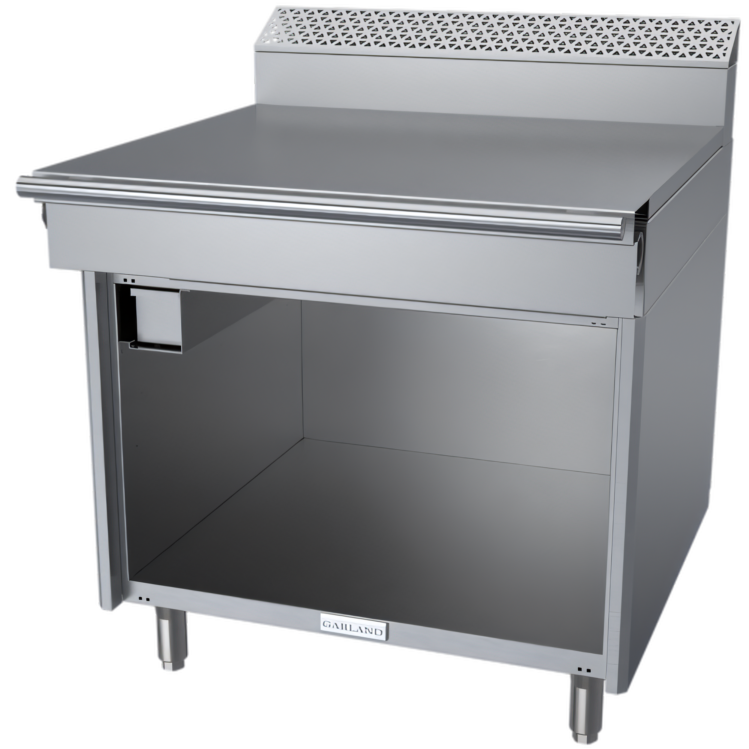 Perfectly matches Cuisine Series ranges for a seamless, stainless work lineAdd valuable plating space and convenient under-counter storage to your cookline without sacrificing the rugged durability you expect from Garland. The C36-SC spreader cabinet drops straight into any 36" gap in a Cuisine Series battery—or stands alone—to create a continuous, easy-to-clean stainless surface.