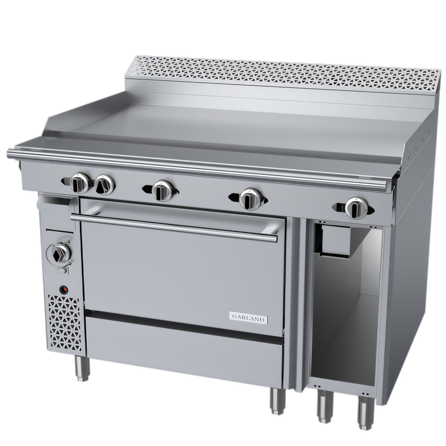 Thermostatic Griddle • Convection Oven Base • Open Storage RightBuilt for the demands of high-volume kitchens, the Garland Cuisine Series 48" Heavy-Duty Range combines a precision-controlled 1" thick griddle with a powerful convection oven and convenient open storage. Rugged stainless-steel construction, accurate temperature management, and 157,000 BTU of total cooking power give chefs the consistency and speed they need—shift after shift.