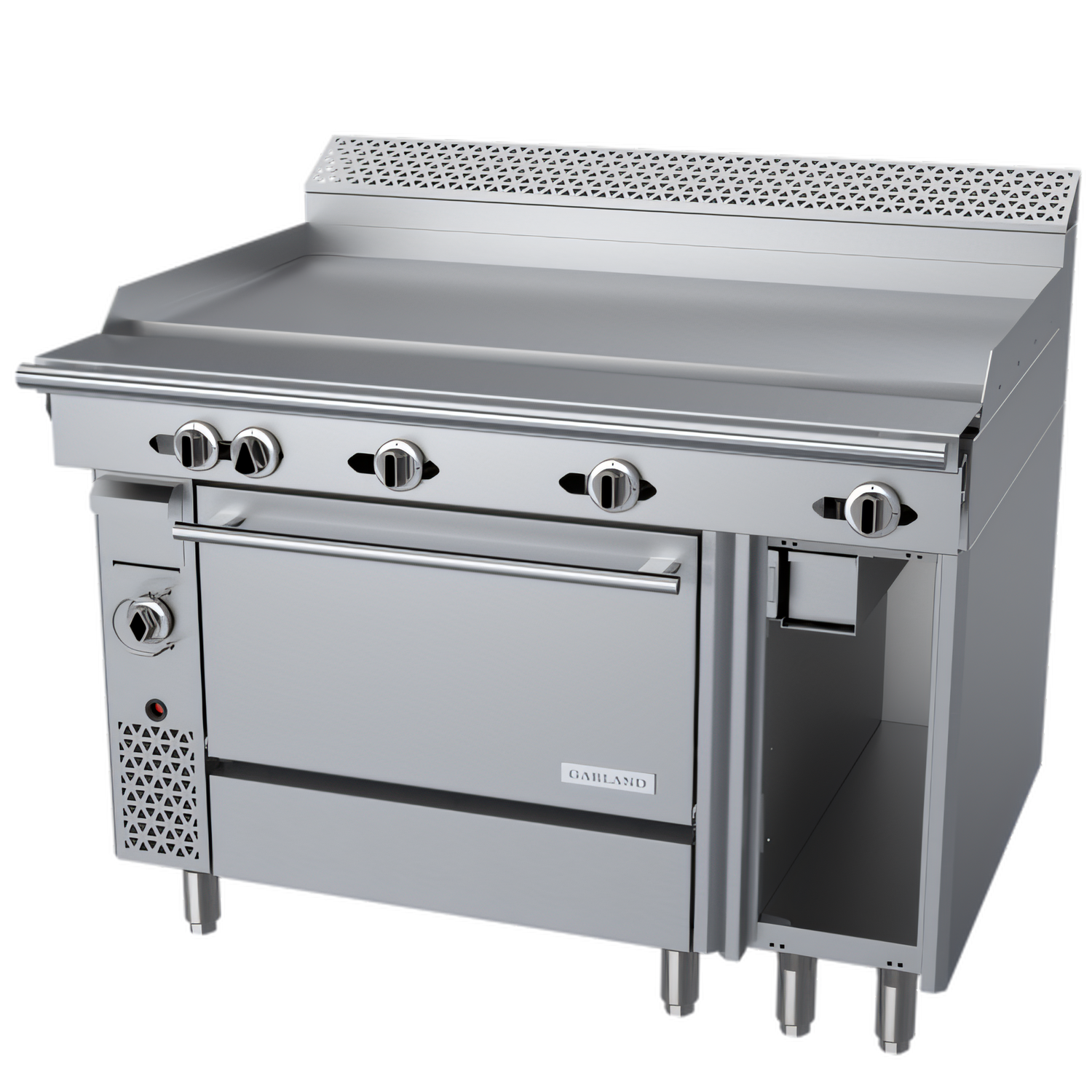 Standard oven • 12" open storage base • 160,000 BTU (Natural Gas)Built for the toughest commercial kitchens, the Garland C48-1R combines a full-width 48" griddle, a powerful standard oven and convenient right-hand open storage—all in a single, easy-to-clean, stainless-steel cabinet. From breakfast rush to late-night service, this heavy-duty range delivers the searing power, consistency and durability chefs demand.