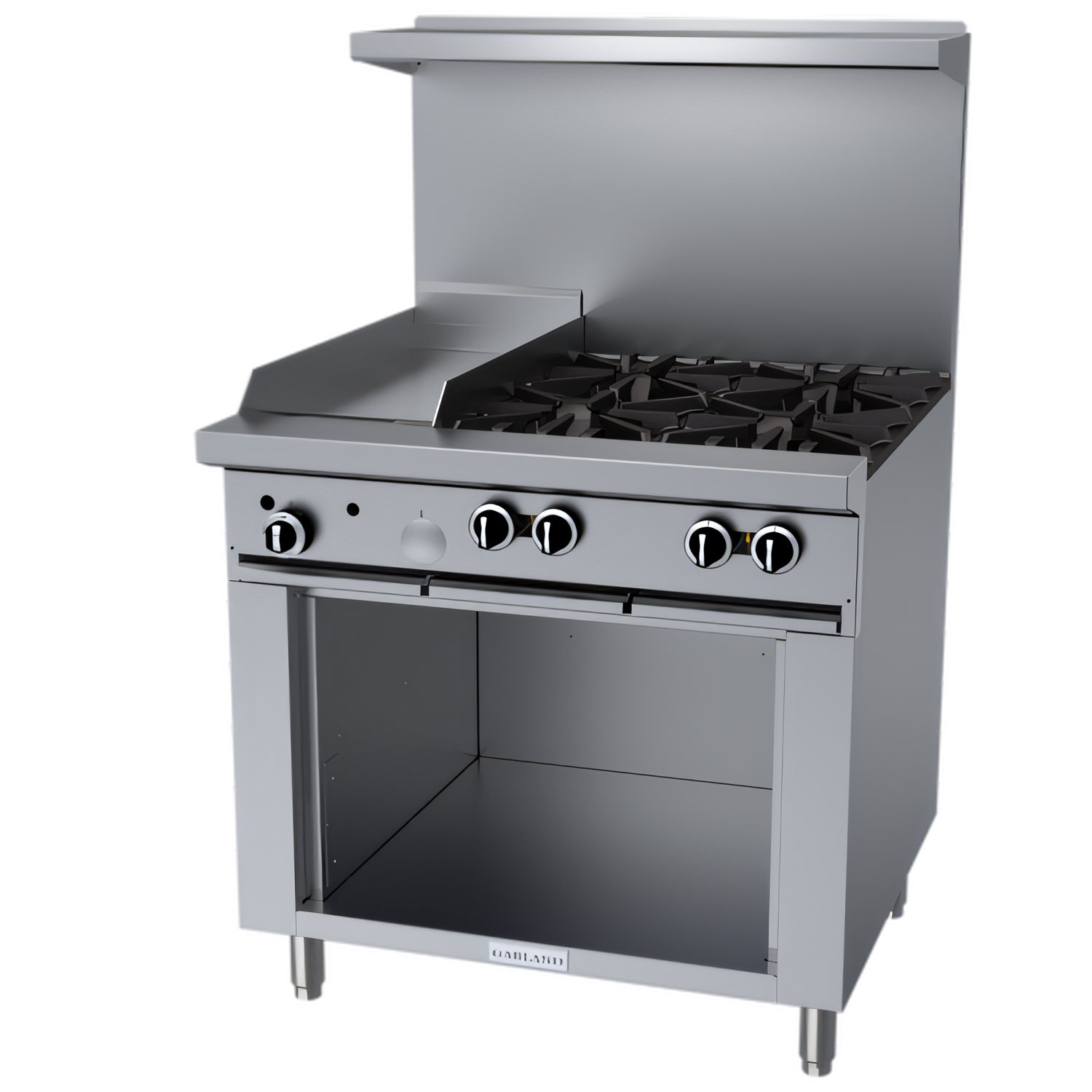 4 × 33,000 BTU Open Burners • 12" Griddle • Storage Base • 150,000 BTUBuilt for today’s high-volume kitchens, the Garland G Starfire Pro packs heavy-duty power, rugged construction and operator-friendly details into a space-saving 36 inch footprint. Four 33,000 BTU Starfire Pro open burners sit beside a precision-machined 12" griddle, giving chefs instant flexibility for sautéing, boiling, searing and finishing—all on a single range.