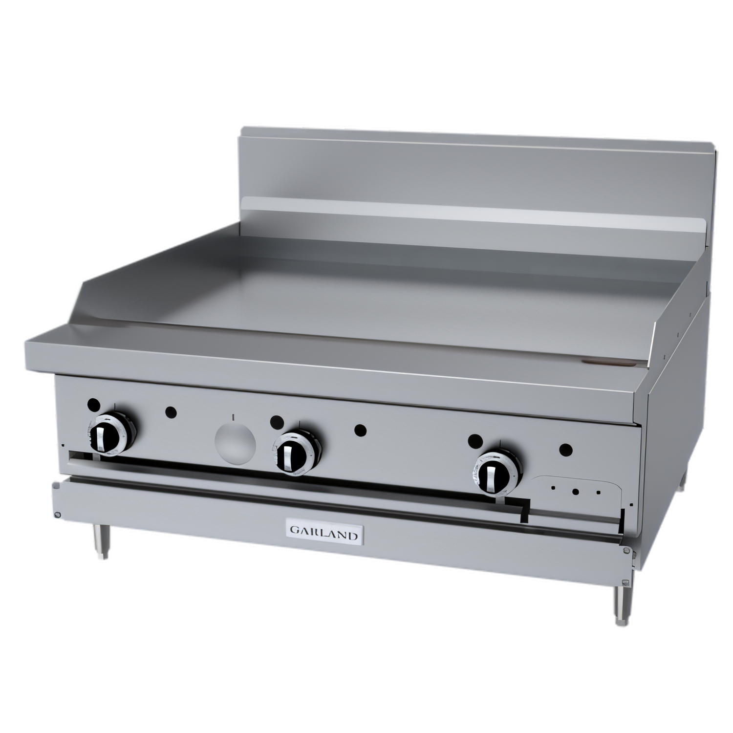 Model G36-G36T | 54,000 BTU | Natural / PropaneBuilt for kitchens that run flat-out, the Garland G Starfire Pro™ 36" modular griddle brings the legendary Starfire performance to a compact, base-free footprint. Drop it onto a refrigerated chef base, stand or curb, and unleash 54,000 BTU of even, warp-resistant heat across a full 5/8" steel plate.