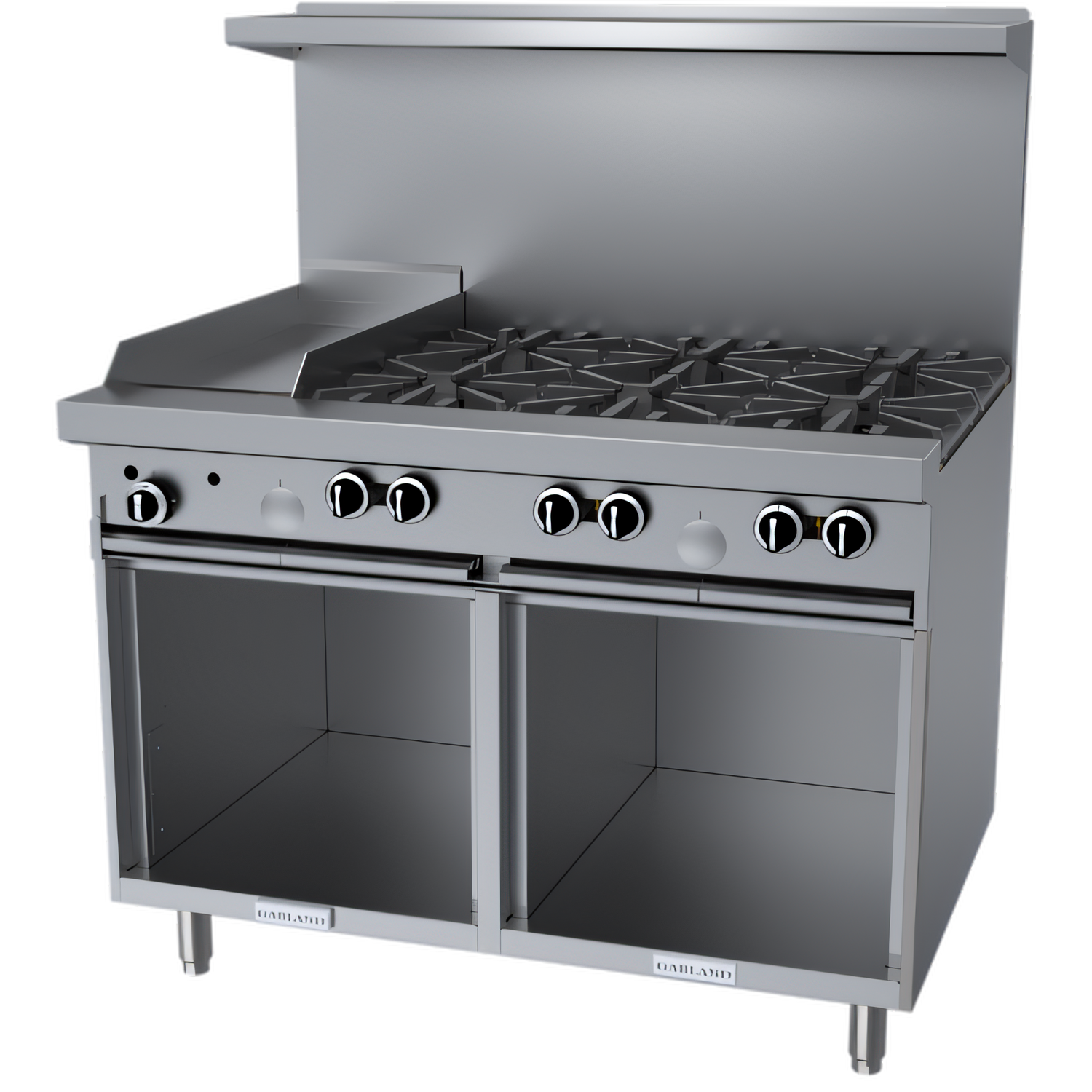 Garland G Starfire Pro 48" Gas Restaurant Range – 6 Open Burners + 12" Griddle, Dual Storage Bases