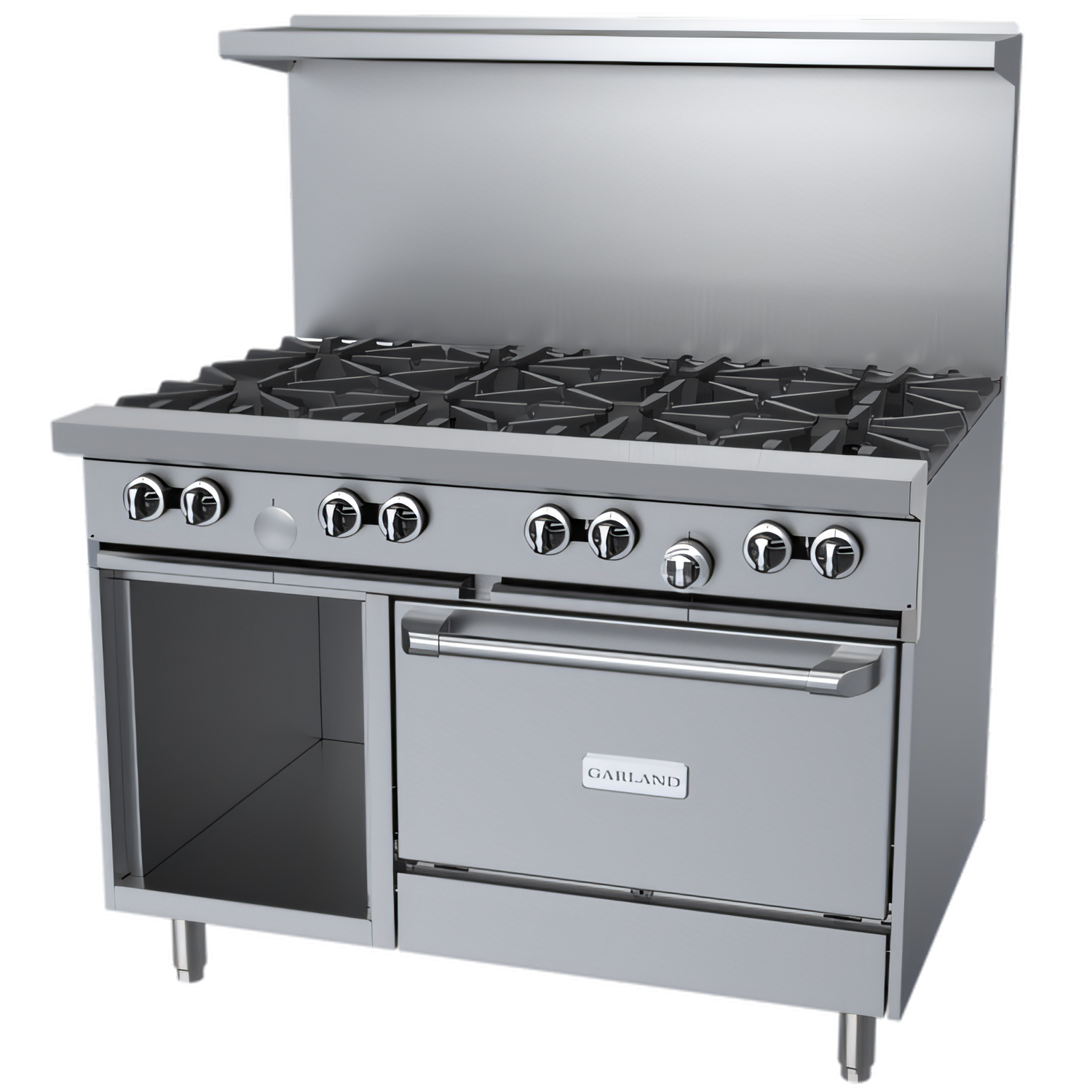 8 × 33,000 BTU Open Burners | Standard Oven + Storage Base | 302,000 BTU TotalDesigned for the punishing pace of high-volume kitchens, the Garland G Starfire Pro 48" range delivers unstoppable heat, rock-solid durability and the versatility chefs demand. Eight powerful Starfire Pro open burners sit atop a reinforced chassis, while a full-size standard oven teams up with a convenient storage base to keep your workflow smooth and efficient.