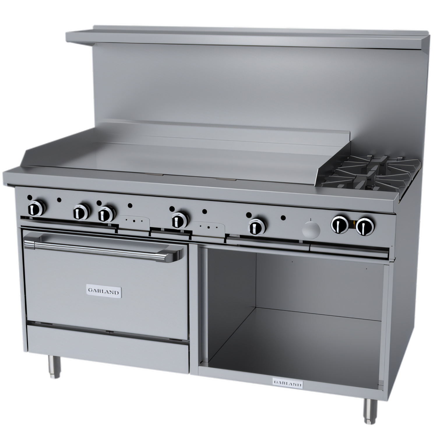 2 Open Burners • 48" Smooth Steel Griddle • Standard Oven + Storage Base | Model G60-2G48RSBuilt for busy commercial kitchens, the Garland G Starfire Pro delivers unbeatable cooking versatility in a single 60" footprint. Two powerful open burners, a full-width 48" griddle, and a heavy-duty standard oven give you the speed, capacity and consistency today’s high-volume operations demand.