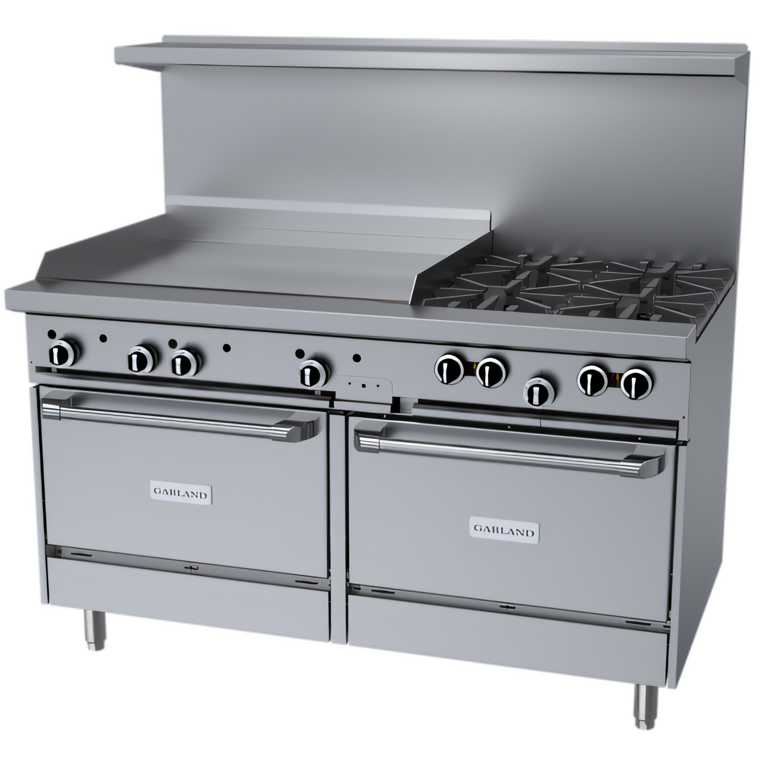 4 Open Burners | 36" Steel Griddle | (2) Standard Ovens – 262,000 BTUBuilt for busy commercial kitchens, the Garland G Starfire Pro combines high-performance Starfire-Pro open burners with a full-size griddle and twin ovens—all in one rugged 60" platform. From breakfast rush to dinner service, this range delivers the speed, capacity and durability professionals trust.