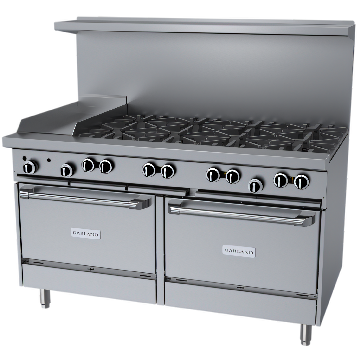 8 Starfire-Pro Open Burners • 12" Steel Griddle • Dual Standard OvensEngineered for high-volume kitchens that can’t afford downtime, the Garland G Starfire Pro couples raw cooking power with rock-solid construction—delivering speed, consistency and versatility on a single, 60-inch footprint.
