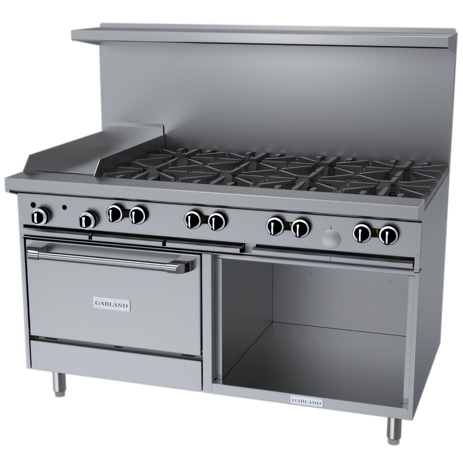 Garland G Starfire Pro 60" Gas Restaurant Range – 8 Burners, 12" Griddle & Oven/Storage Combo