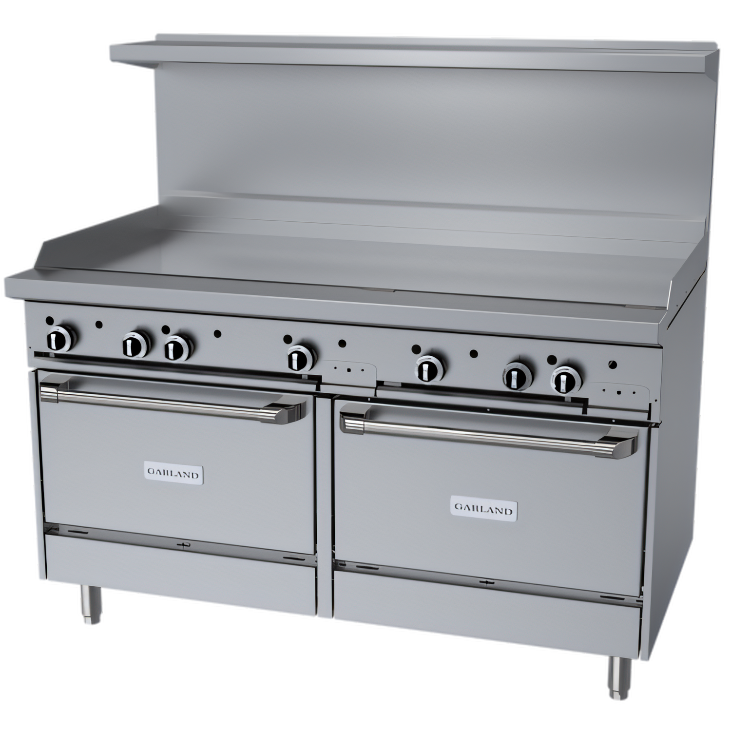 Built for demanding, high-volume kitchens, the Garland Starfire Pro 60" range delivers an expansive griddle cooking surface and two full-size ovens in one rugged, service-ready chassis. From the 5/8" thick steel plate to the cool-touch oven doors, every detail is engineered for all-day reliability, rapid recovery and simple cleanup.