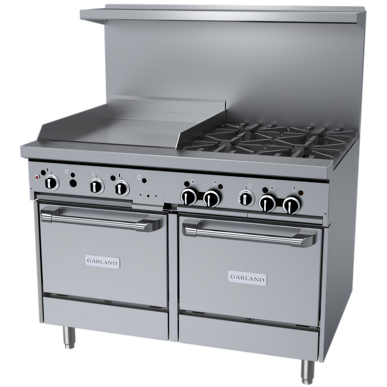 4 Open Burners • 24" Thermostatic Griddle • Dual Space-Saver OvensBring powerhouse performance to a compact 48" footprint. The GFE Starfire Pro blends Garland’s 26,000 BTU Starfire Pro burners, a precision-controlled griddle and twin high-efficiency ovens to keep every station of your kitchen producing at full speed—all behind the safety of electronic spark ignition and full flame-failure protection.