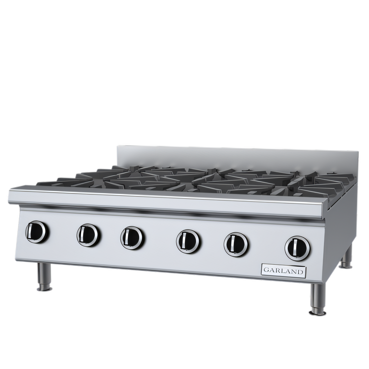6 Starfire Pro burners | 180,000 BTU | CountertopGive your line the firepower of a full-size range without giving up floor space. The Garland Signature hotplate packs six 30,000 BTU Starfire Pro open burners into a rugged, 36-inch countertop frame—engineered to keep up with the busiest commercial kitchens.