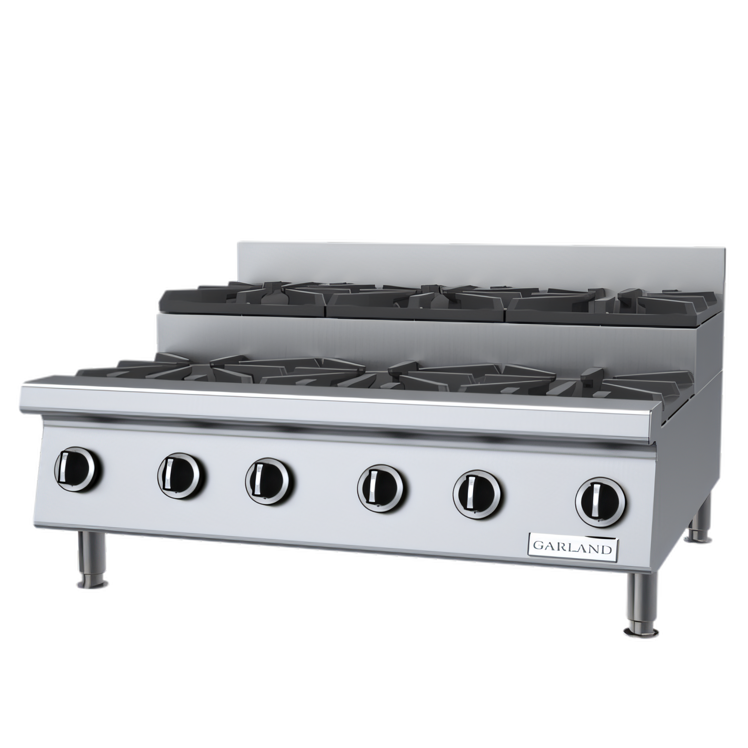 Counter Series | 6 open burners • 180,000 BTUGive your cooks two levels of full-range power in a single countertop footprint. The Starfire Step-Up Hot Plate combines Garland’s award-winning Starfire Pro burners with a rugged stainless body to deliver floor-range performance wherever you need it.