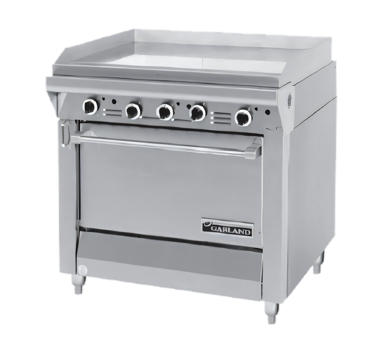 Model M48R – 139,000 BTU, thermostatic griddle with standard ovenEngineered for high-volume kitchens that refuse to compromise on control or durability, the 34" Garland Master Series M48R combines a full-width, 1" thick thermostatic griddle with a powerful, fully-porcelainized standard oven. From breakfast service to late-night sauté, this all-in-one workhorse delivers consistent heat, rock-solid construction, and the legendary reliability food-service professionals expect from Garland.
