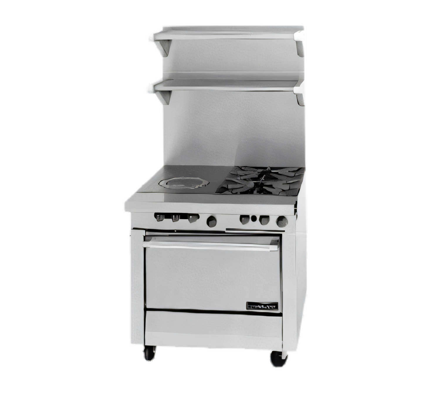 (2) 35,000 BTU Starfire Open Burners • 17" Front-Fired Hot Top • Standard OvenEngineered for the toughest commercial kitchens, the Garland Master Series M54R delivers high output, rock-solid durability and the menu flexibility you need in a compact 34-inch footprint.