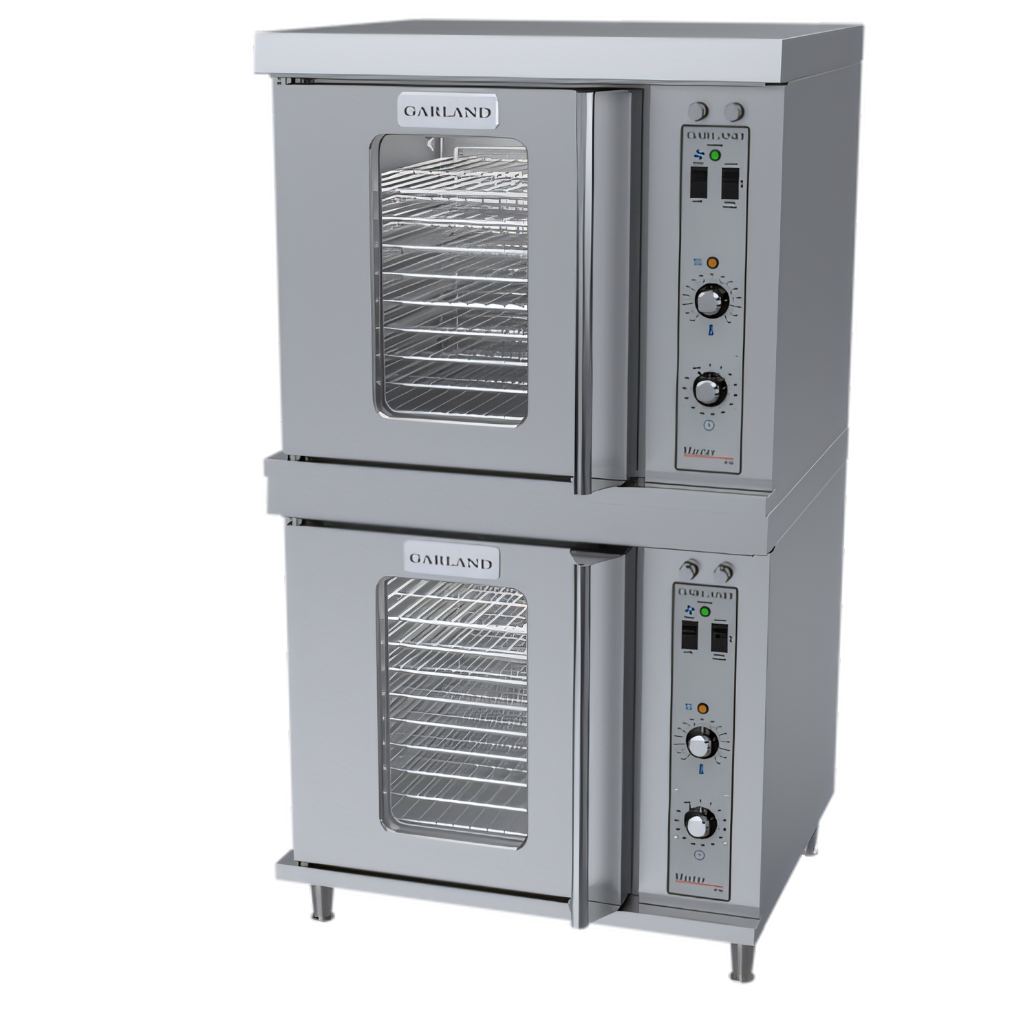 Model MCO-E-25-C | 11.2 kW total | cULus & NSF ListedEngineered for busy commercial kitchens that demand consistency, speed and durability, the Master Series double-deck half-size convection oven puts two powerful 5.6 kW cavities in less than 26 inches of floor space. Garland’s proven Master 200 solid-state controller delivers precise 150 – 500°F cooking with a 90-minute timer, while a two-speed 1/3 HP fan bathes every rack in even heat for beautifully uniform results — no pan rotation required.