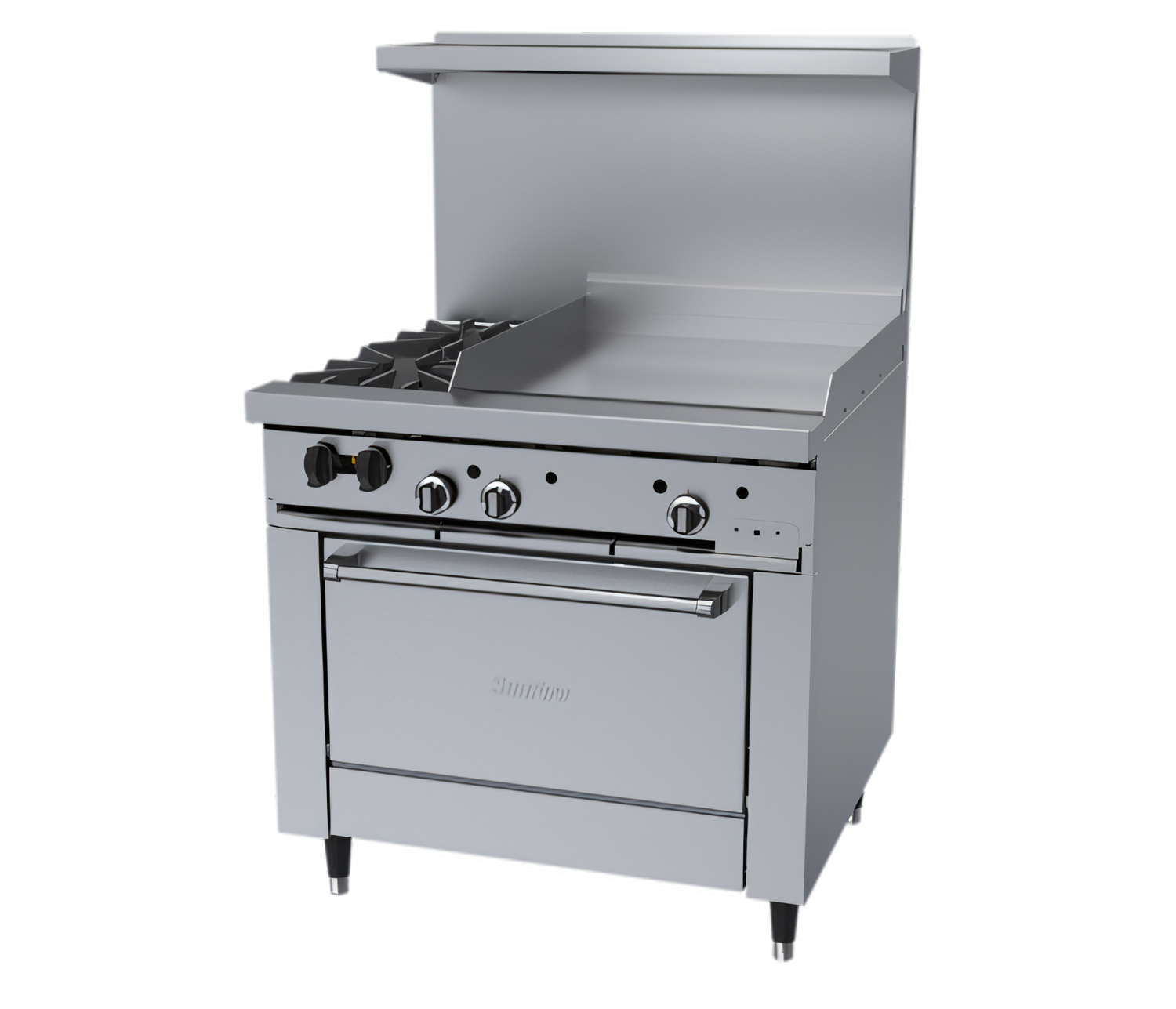 SunFire 36" Gas Restaurant Range – 24" Griddle & 2 Open Burners