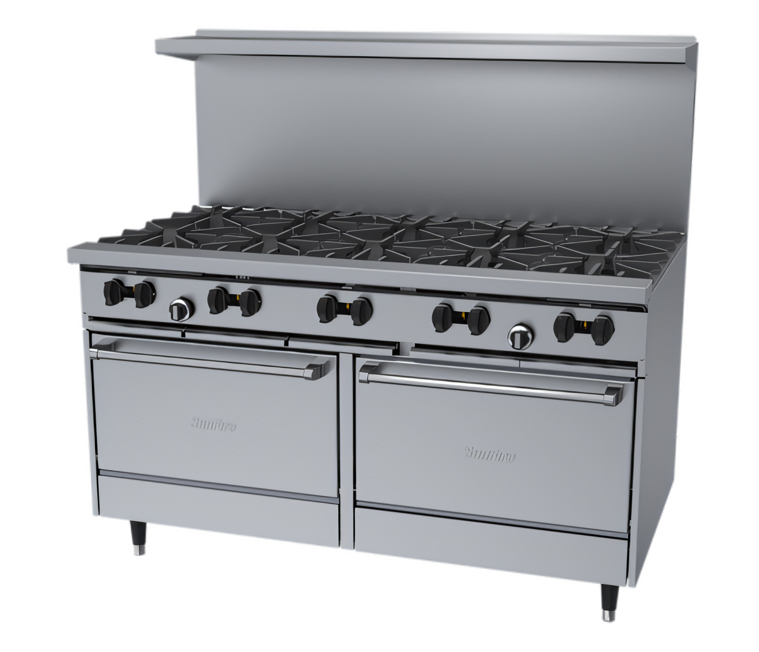 10 Open Burners • Dual Standard Ovens • 366,000 BTUPower through the rush with Garland’s Signature SunFire® 60" range – a rugged, all-purpose workhorse that delivers high BTU performance, versatile cooking surfaces, and the rock-solid reliability Garland is known for.