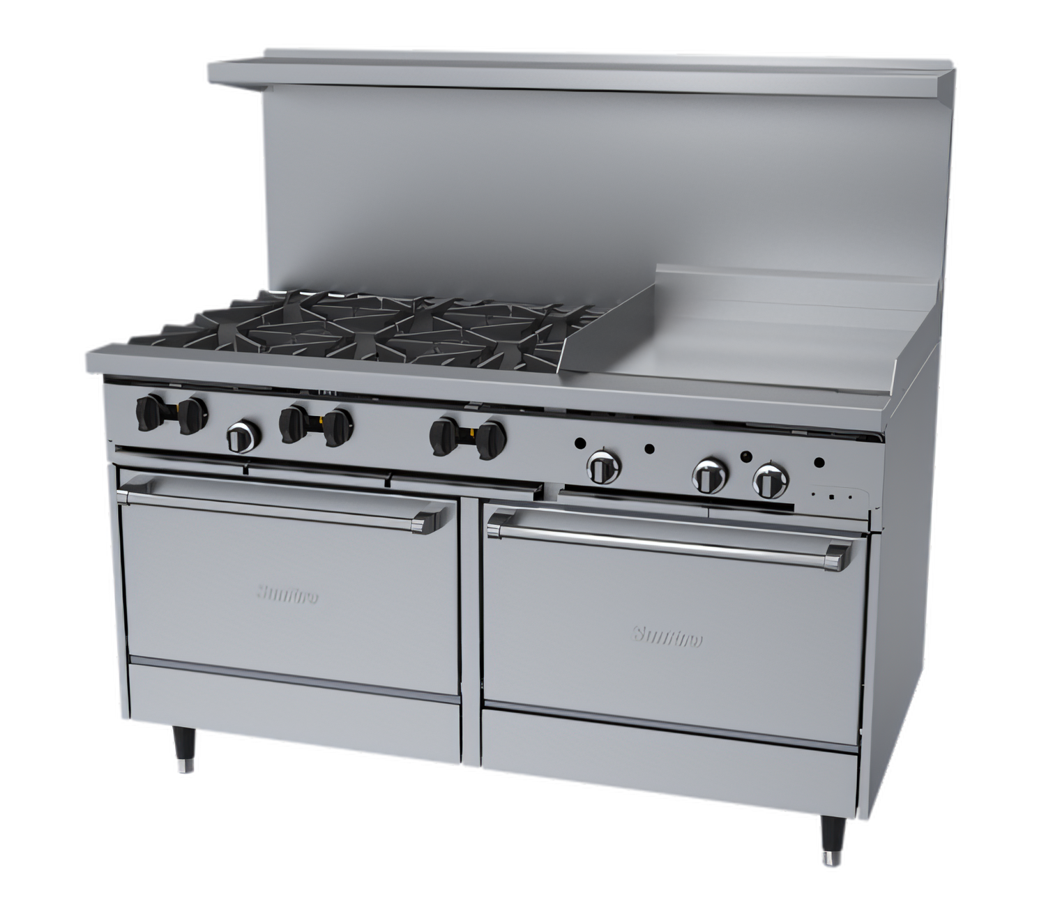 SunFire 60" Gas Restaurant Range – 24" Griddle & 6 Open Burners