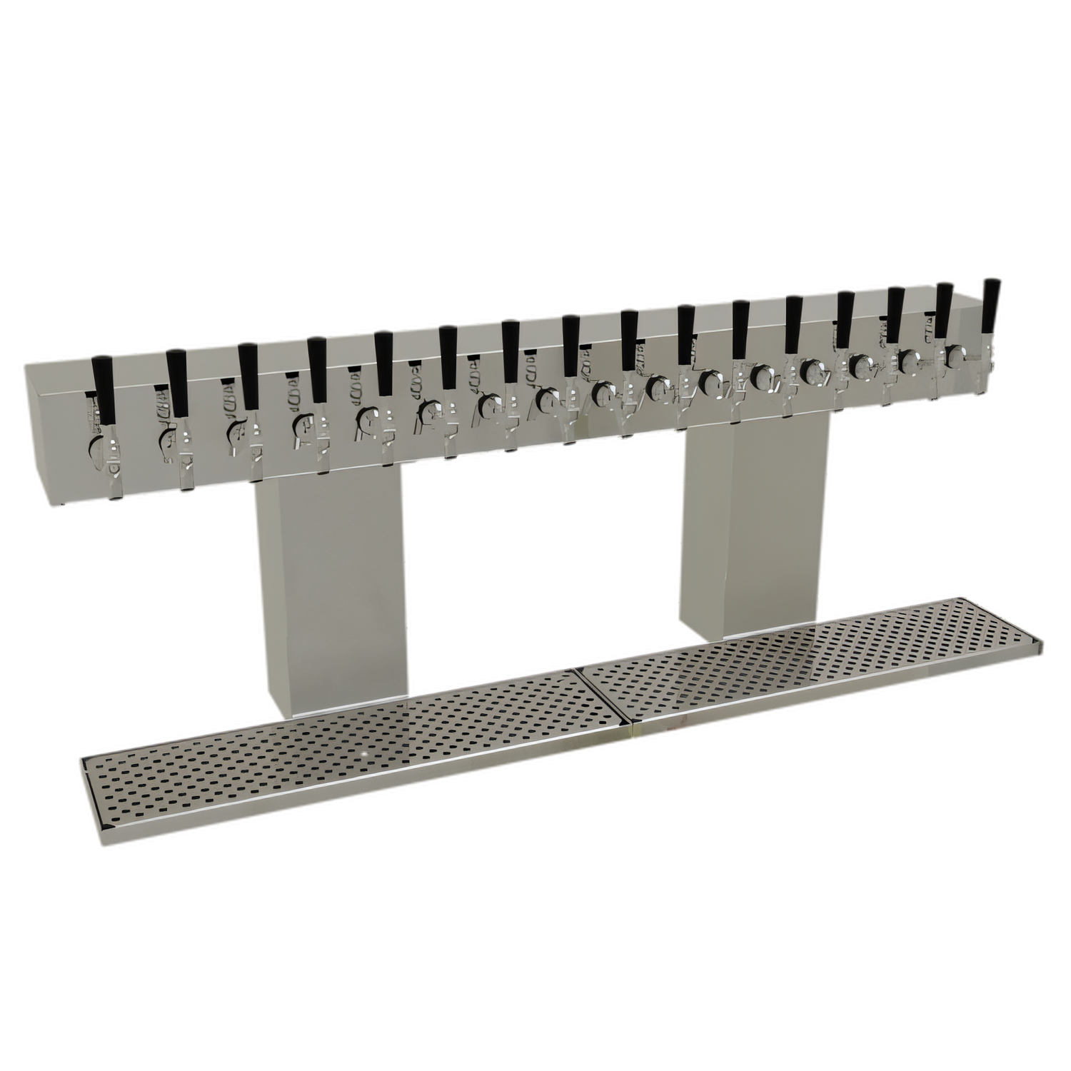 Bridge Draft Dispensing Tower, countertop, (16) stainless steel faucets (handles not included), glycol-cooled, (2) 6" W insulated columns, insulated cold plate assembly, (2) surface mount drain pans with removable inserts, all stainless steel construction, mirror finish (NOTE: Made to order, not returnable)