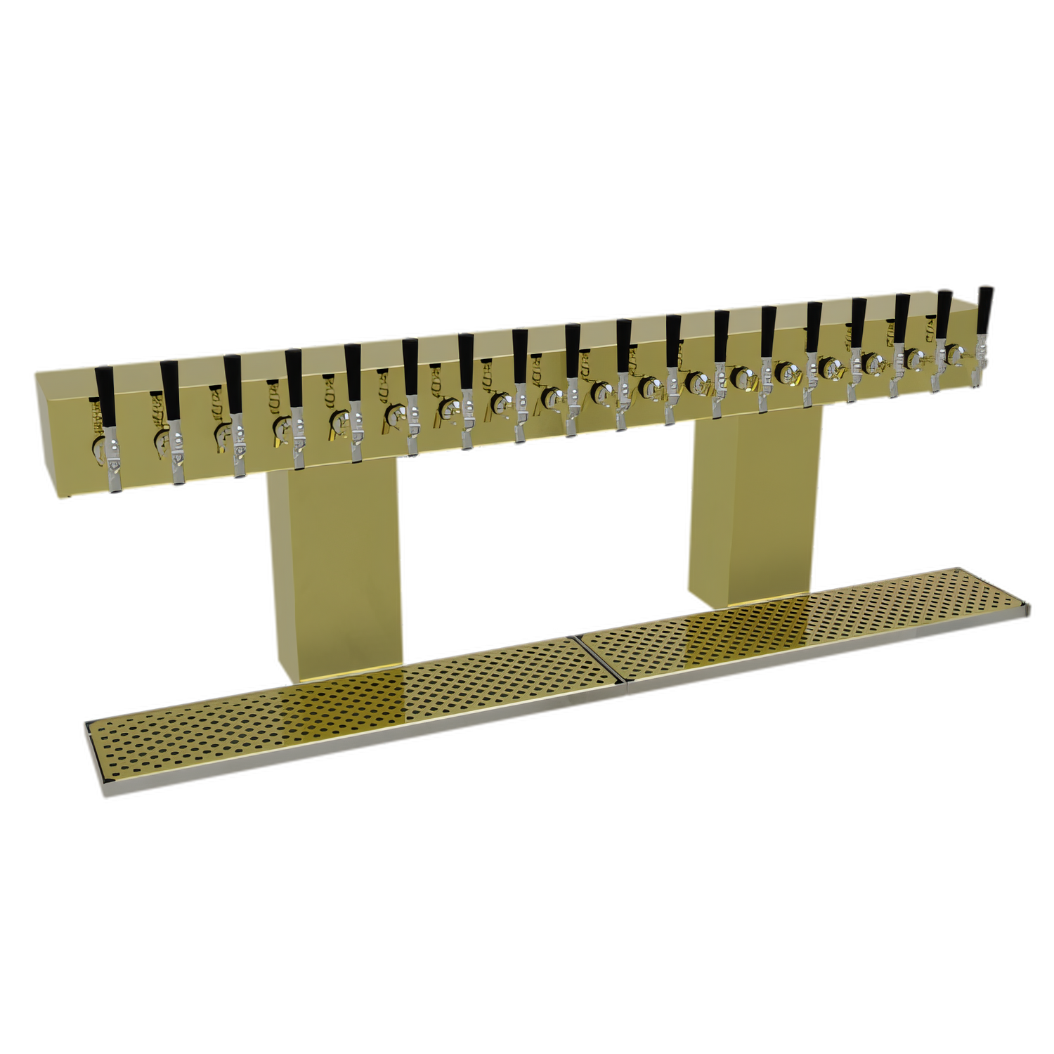 Bridge Draft Dispensing Tower, countertop, (18) stainless steel faucets (handles not included), glycol-cooled, (2) 6" W insulated columns, insulated cold plate assembly, (2) mirror finish surface mount drain pans with brass finish removable inserts, all stainless steel construction, polished brass finish (NOTE: Made to order, not returnable)
