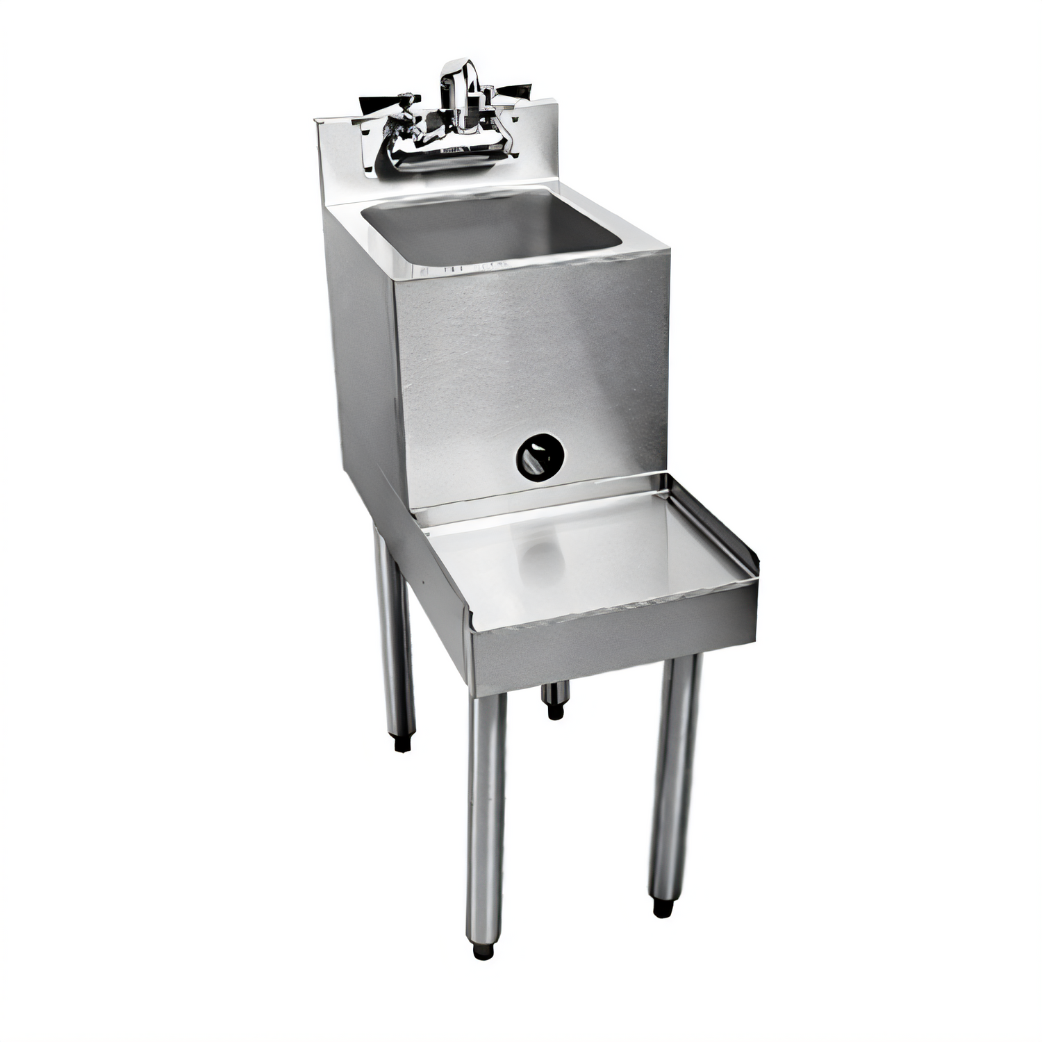 CHOICE Underbar Blender Station, freestanding with sink, 12"W x 29"D, backsplash, 6" deep sink bowl, deck mounted gooseneck faucet (low lead compliant), 10"D blender shelf, power cord hole with grommet on front skirt, junction box for duplex outlet mounted underneath blender shelf (outlet not included), one-piece seamless top & backsplash, stainless steel construction, stainless steel legs with adjustable stainless steel bullet feet, ETL-Sanitation (NOTE: Made to order, not returnable)