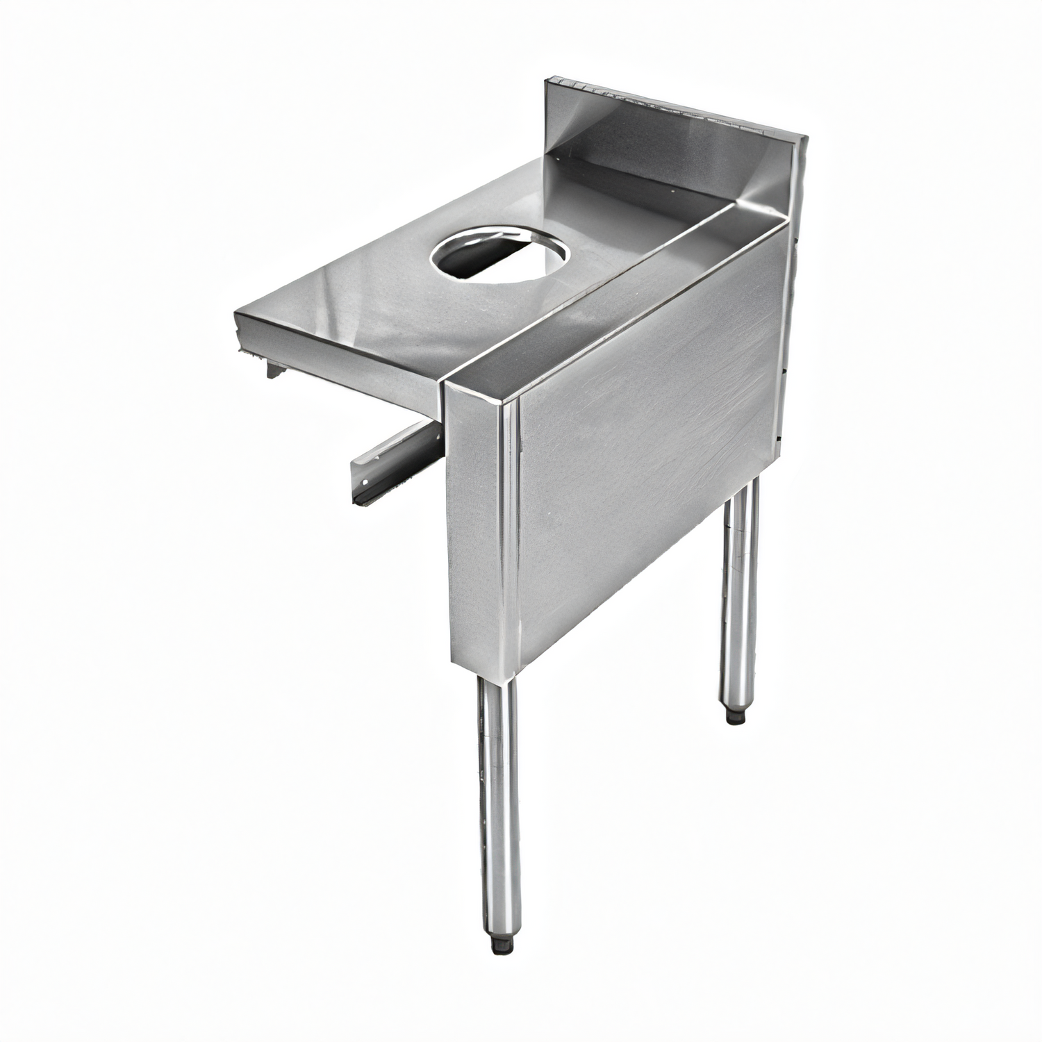 CHOICE Underbar Dry Waste Chute, 15"W x 24"D, removable top, 6" diameter waste chute, backsplash, accommodates Rubbermaid® Slim Jim™ trash receptacle (not included), stainless steel construction, stainless steel legs on right, ETL-Sanitation (designed to mount to (1) adjacent underbar unit)