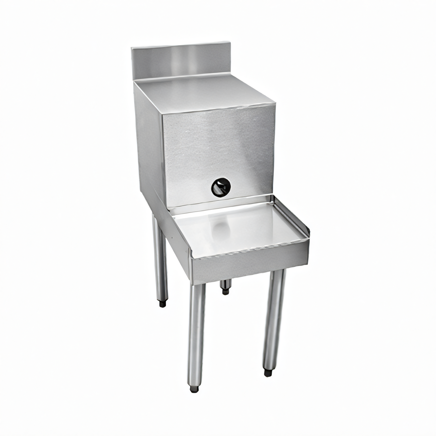 CHOICE Underbar Blender Station, freestanding with filler board, 18"W x 29"D, backsplash, 10"D blender shelf, power cord hole with grommet on front skirt, junction box for duplex outlet mounted underneath blender shelf (outlet not included), one-piece seamless top & backsplash, stainless steel construction, stainless steel legs with adjustable stainless steel bullet feet, ETL-Sanitation (NOTE: Made to order, not returnable)