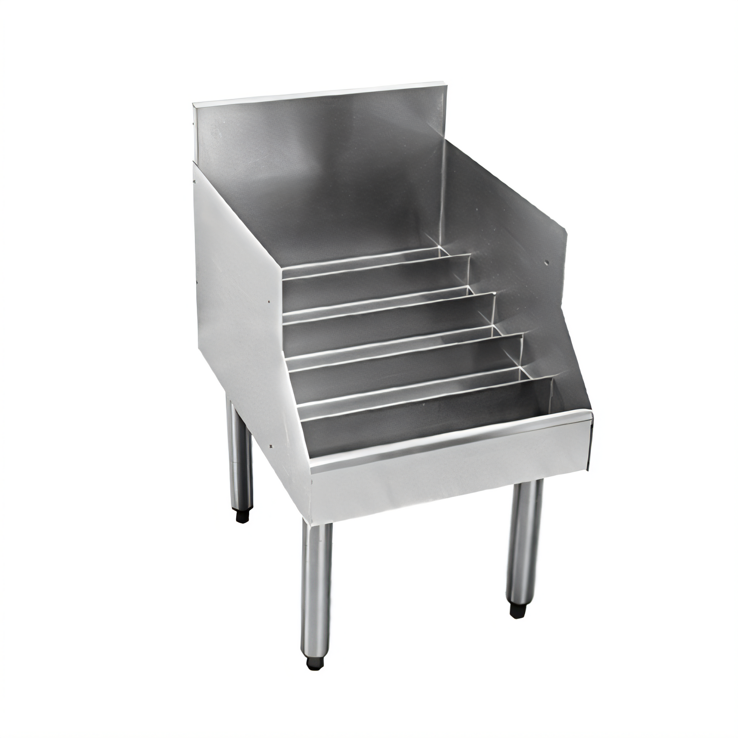 CHOICE Underbar Liquor Steps,, freestanding, 18"W x 24"D, (5) steps, integrated bottle retaining rails, stainless steel construction, stainless steel legs with adjustable stainless steel bullet feet, ETL-Sanitation
