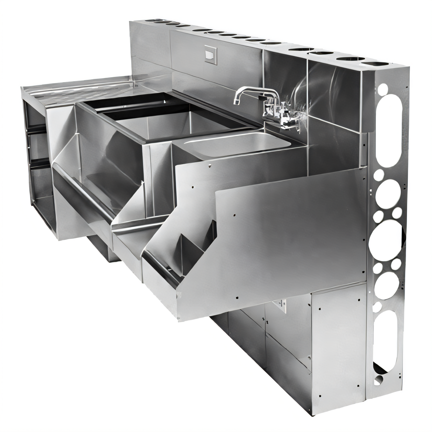 CHOICE Modular Bar Die, 38"H, galvanized steel structure with stainless steel interior finish, includes: mounting of underbar, GFI duplex outlets (wiring not provided), built-in LED lights (wiring not provided), built-in chaseways for plumbing, beverage lines, & wiring, priced per foot (NOTE: Made to order, not returnable)