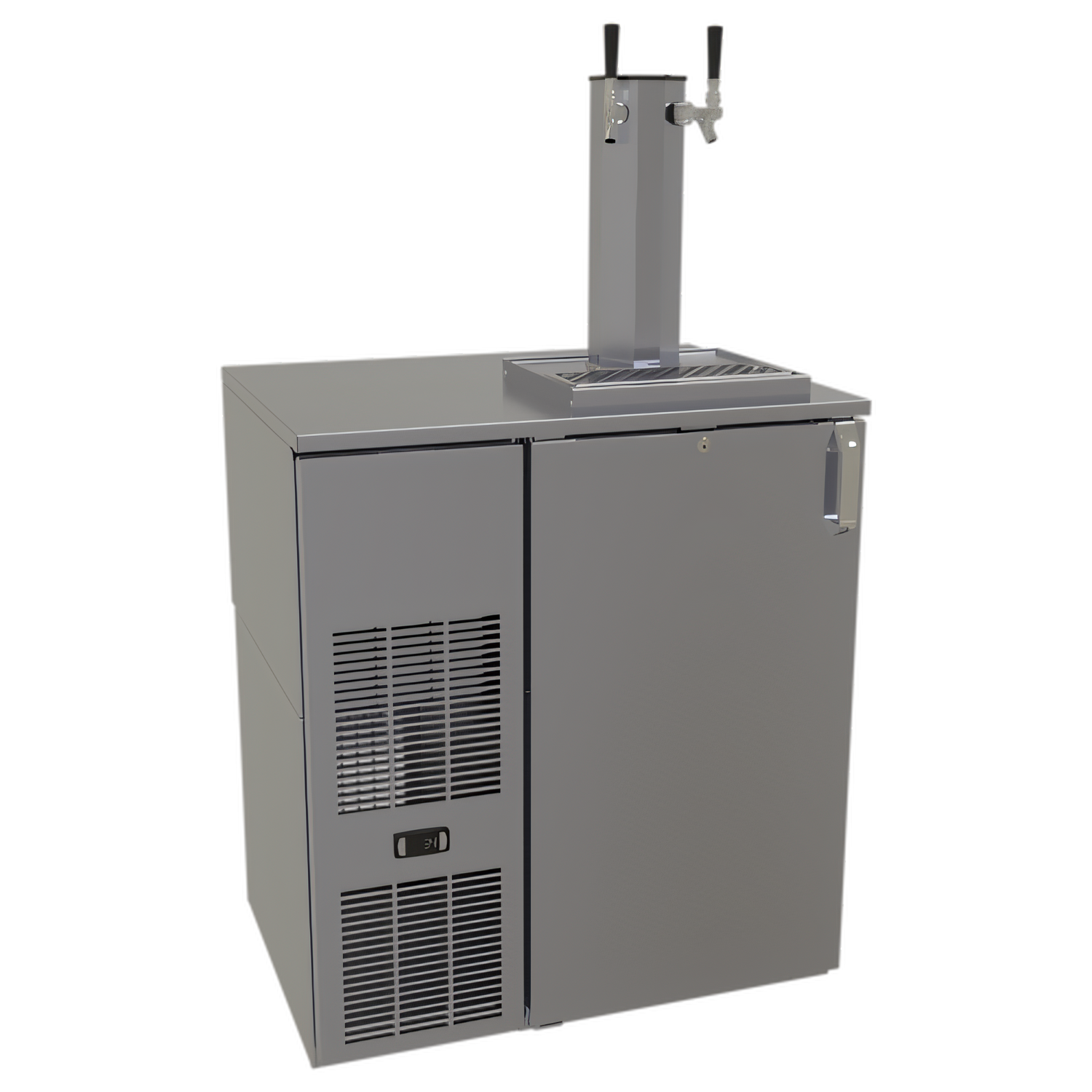 Draft Dispensing Cooler, one zone, front serviced, bar profile, 32"W, one-section, 16"W door opening, self-contained refrigeration, bright white LED interior lighting, front venting, stainless steel interior with keg rack, 1" stainless steel finished top, galvanized steel back, R290 Hydrocarbon refrigerant, 1/6 HP, NSF Standard 7 for open food storage, cETLus, ETL-Sanitation, ETL Verified