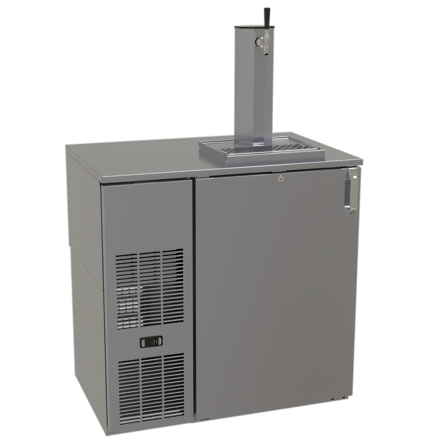 Draft Dispensing Cooler, one zone, front serviced, bar profile, 36"W, one-section, 20"W door opening, self-contained refrigeration, bright white LED interior lighting, front venting, stainless steel interior with keg rack, 1" stainless steel finished top, galvanized steel back, R290 Hydrocarbon refrigerant, 1/6 HP, NSF Standard 7 for open food storage, cETLus, ETL-Sanitation, ETL Verified