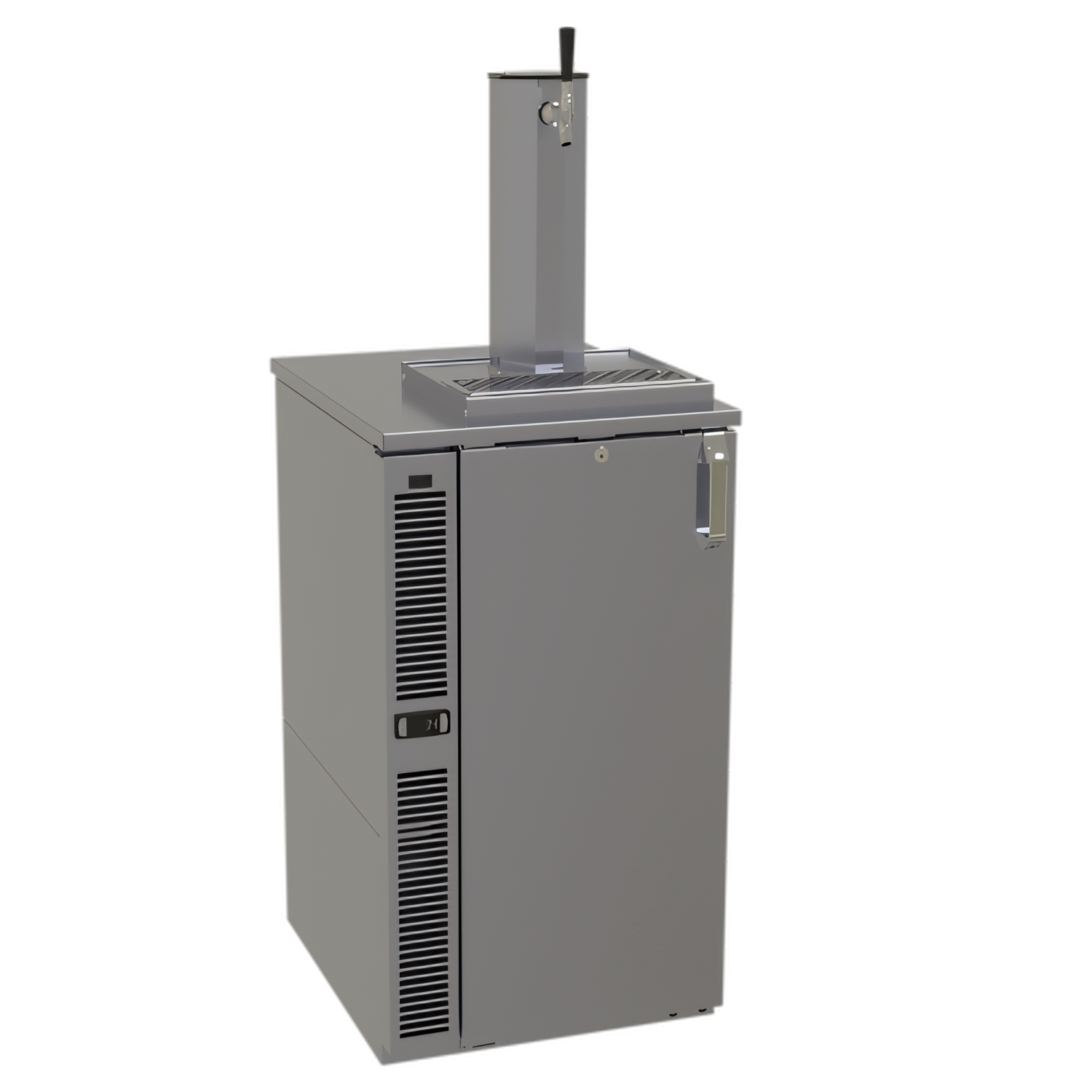 Draft Dispensing Cooler, one zone, side serviced, bar profile, 20"W, one-section, 12"W door opening, self-contained refrigeration, bright white LED interior lighting, front venting, stainless steel interior with keg rack, 1" stainless steel finished top, galvanized steel back, R290 Hydrocarbon refrigerant, 1/8 HP, NSF Standard 7 for open food storage, cETLus, ETL-Sanitation, ETL Verified (NOTE: Made to order, not returnable)