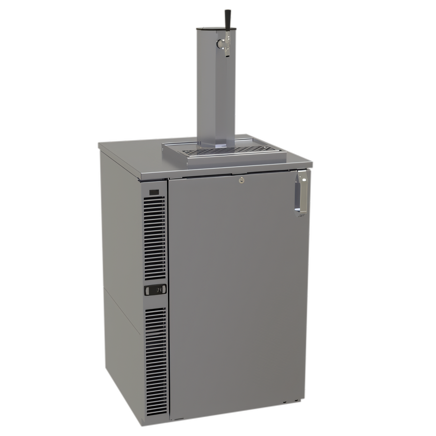 Draft Dispensing Cooler, one zone, side serviced, bar profile, 24"W, one-section, 17.5"W door opening, self-contained refrigeration, bright white LED interior lighting, front venting, stainless steel interior with keg rack, 1" stainless steel finished top, galvanized steel back, R290 Hydrocarbon refrigerant, 1/8 HP, NSF Standard 7 for open food storage, cETLus, ETL-Sanitation, ETL Verified