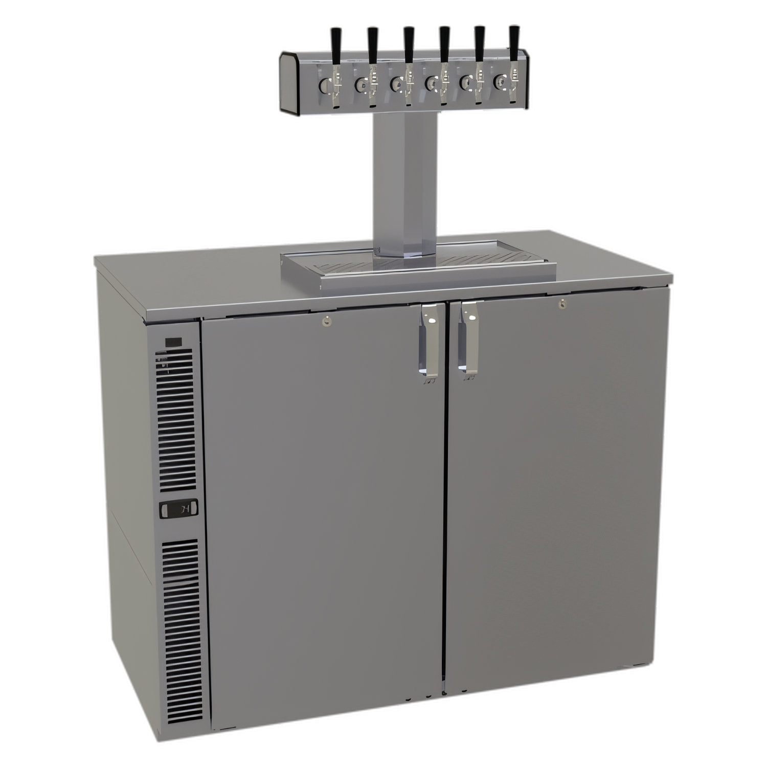 Draft Dispensing Cooler, one zone, side serviced, bar profile, 36"W, two-section, 12"W door opening, self-contained refrigeration, bright white LED interior lighting, front venting, stainless steel interior with keg racks, 1" stainless steel finished top, galvanized steel back, R290 Hydrocarbon refrigerant, 1/8 HP, NSF Standard 7 for open food storage, cETLus, ETL-Sanitation, ETL Verified (NOTE: Made to order, not returnable)