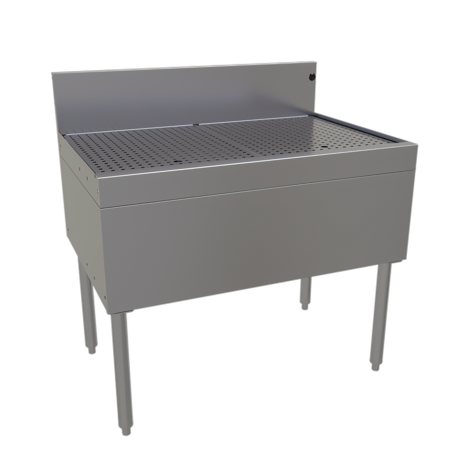 Underbar Drainboard, free standing, 36"W x 24"D, drain pan with removable perforated insert, stainless steel construction, stainless steel legs with adjustable stainless steel bullet feet, ETL-Sanitation (NOTE: Made to order, not returnable)