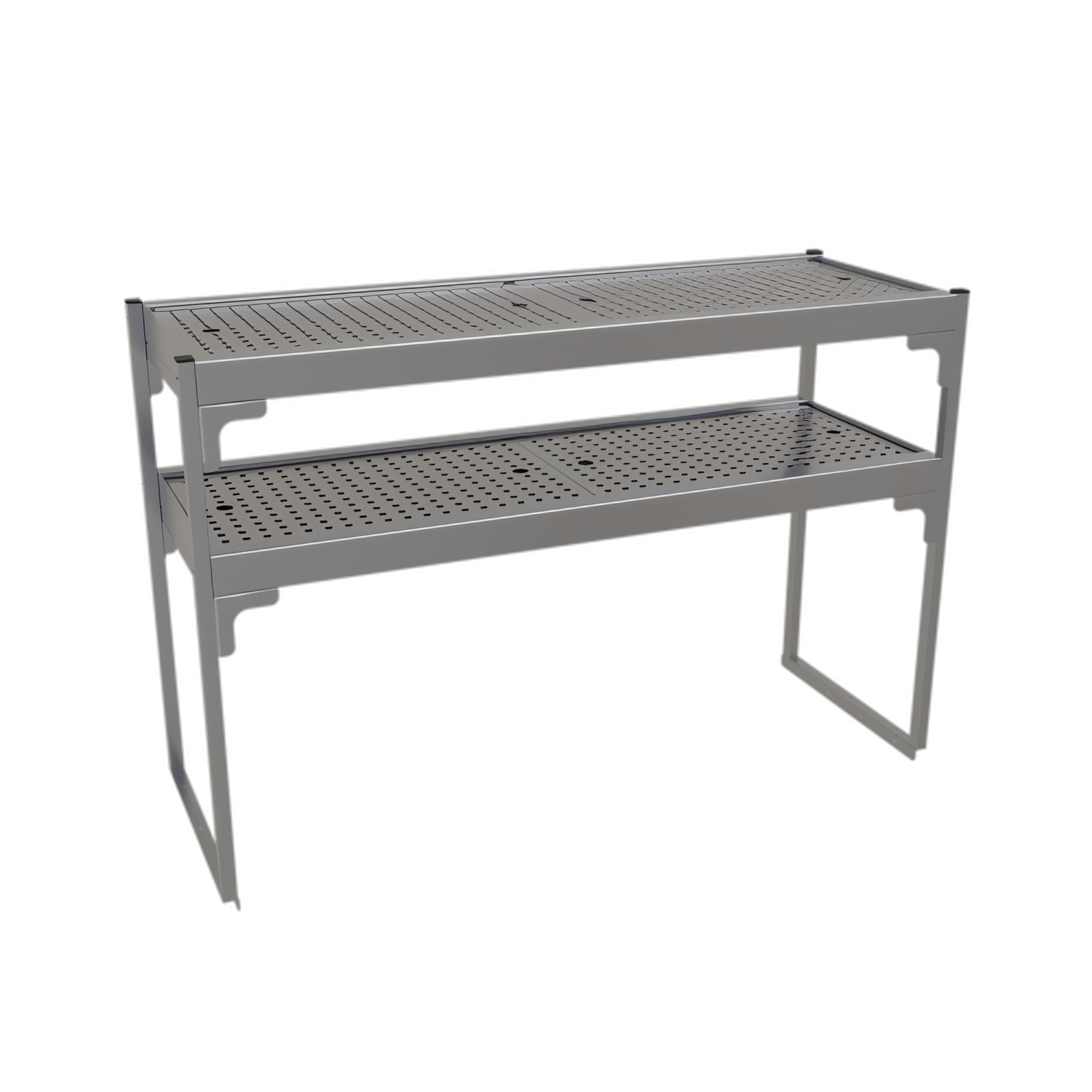 Double Overshelf, 42"W x 15"D x 27"H, removable perforated inserts, includes mounting brackets, 20 gauge stainless steel construction, for pass-thru cocktail stations, ETL-Sanitation
