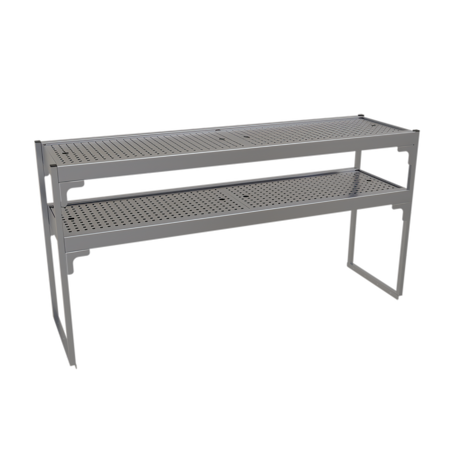 Double Overshelf, 54"W x 15"D x 27"H, removable perforated inserts, includes mounting brackets, 20 gauge stainless steel construction, for pass-thru cocktail stations, ETL-Sanitation