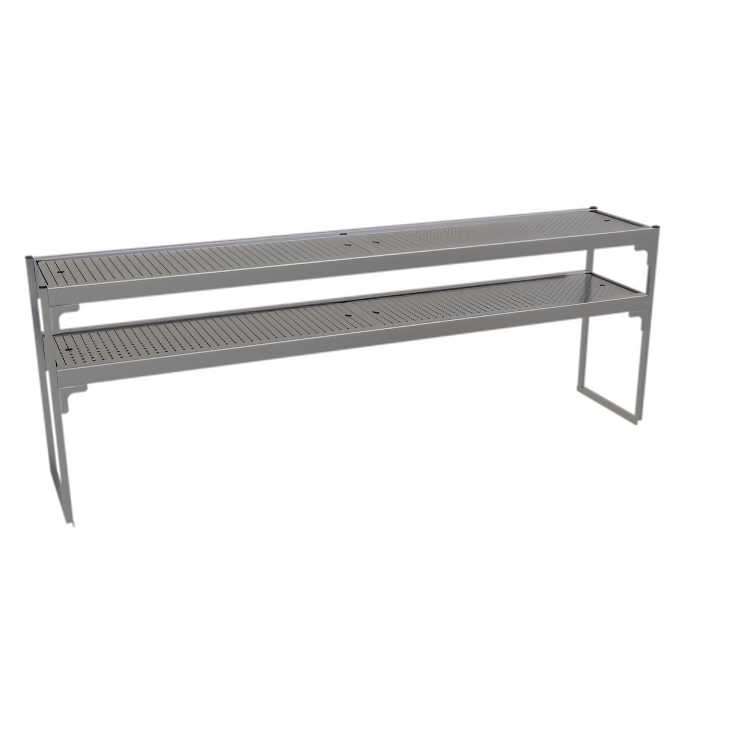 Double Overshelf, 78"W x 15"D x 27"H, removable perforated inserts, includes mounting brackets, 20 gauge stainless steel construction, for pass-thru cocktail stations, ETL-Sanitation