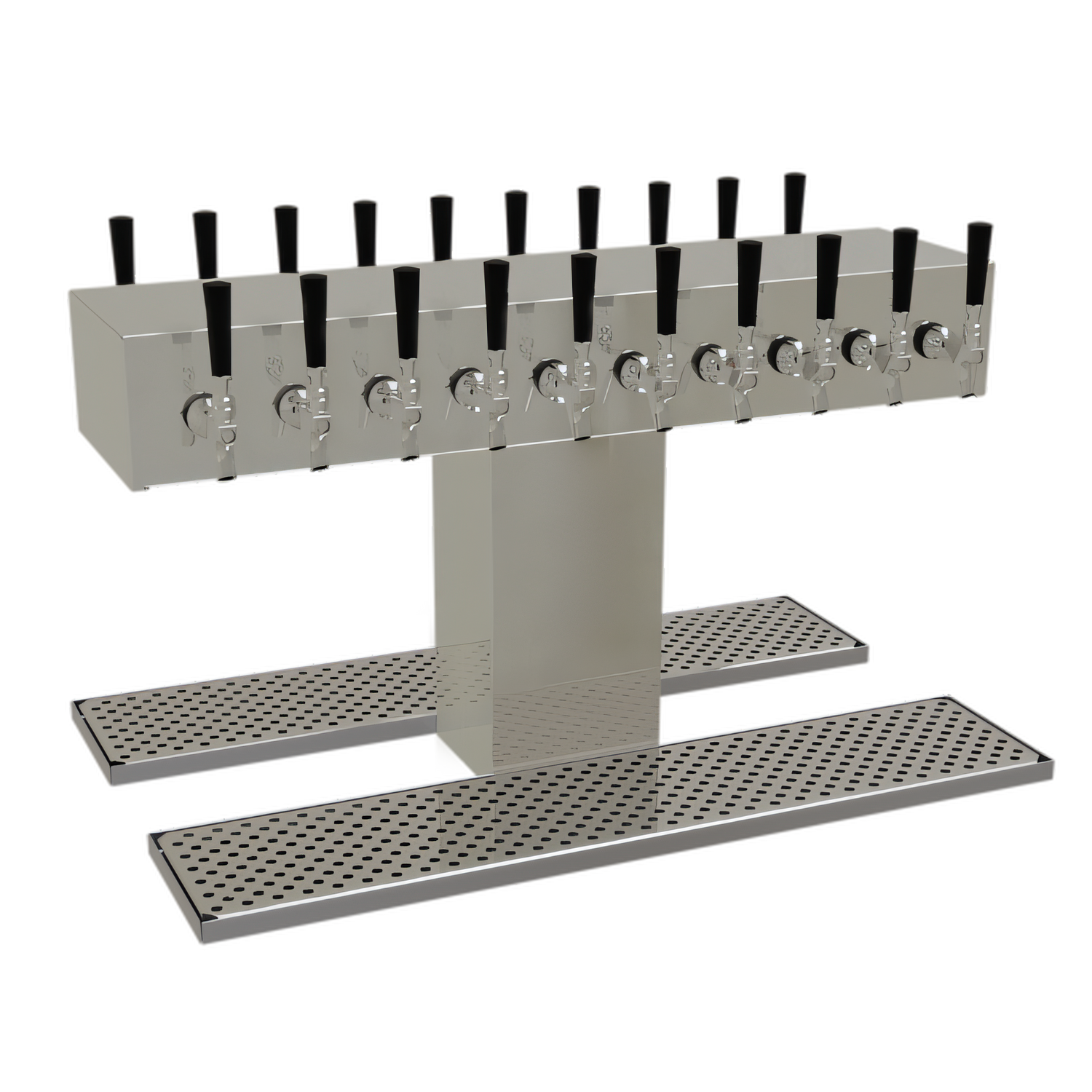 Double-Sided Draft Dispensing Tower, countertop, (20) stainless steel faucets (handles not included), glycol-cooled, (1) 6-3/4" W insulated column, insulated cold plate assembly, (2) surface mount drain pans with removable inserts, all stainless steel construction, mirror finish (NOTE: Made to order, not returnable)
