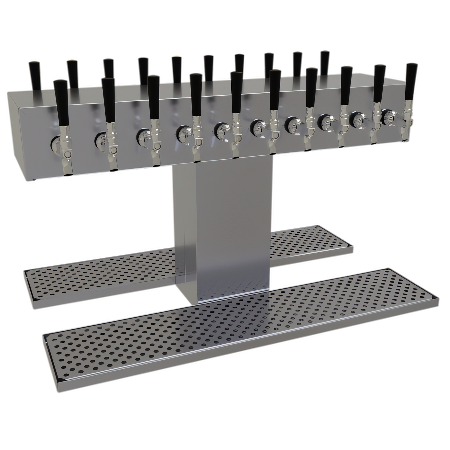 Double-Sided Draft Dispensing Tower, countertop, (20) stainless steel faucets (handles not included), glycol-cooled, (1) 6-3/4" W insulated column, insulated cold plate assembly, (2) surface mount drain pans with removable inserts, all stainless steel construction, stainless steel finish (NOTE: Made to order, not returnable)