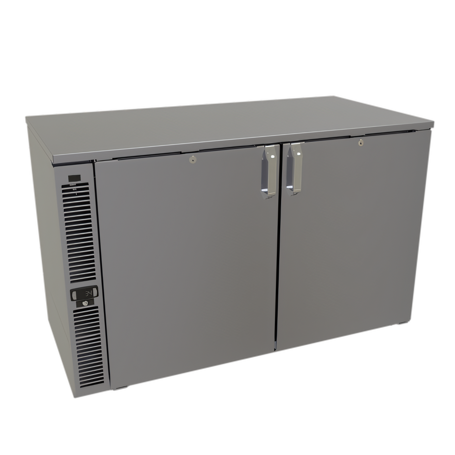 Froster, one zone, side serviced, low profile, 48"W, two-section, 18"W door opening, self-contained refrigeration, LED interior lighting, front venting, stainless steel interior & exterior sub-top, (3) adjustable shelves per door, R290 Hydrocarbon refrigerant, 1/3 HP, NSF Standard 7, cETLus, ETL-Sanitation, ETL Verified (NOTE: Made to order, not returnable)