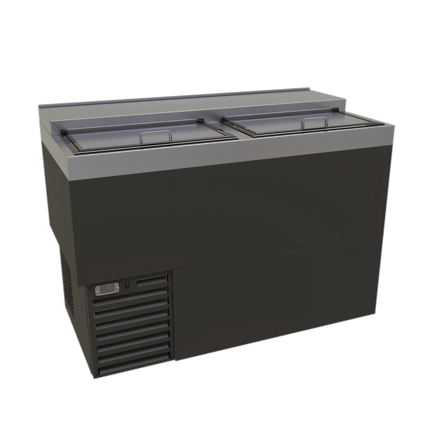 Underbar Glass Froster, 48"W x 24"D, self-contained refrigeration, 12°F (-11°C) to 35°F (2°C) temperature range, (2) top sliding doors, includes (2) shelves & bottom rack, automatic condensate evaporator, automatic & manual defrost cycles, black vinyl exterior, stainless steel interior & top, R290 Hydrocarbon refrigerant, 1/3 HP, cETLus, ETL-Sanitation, ETL Verified
