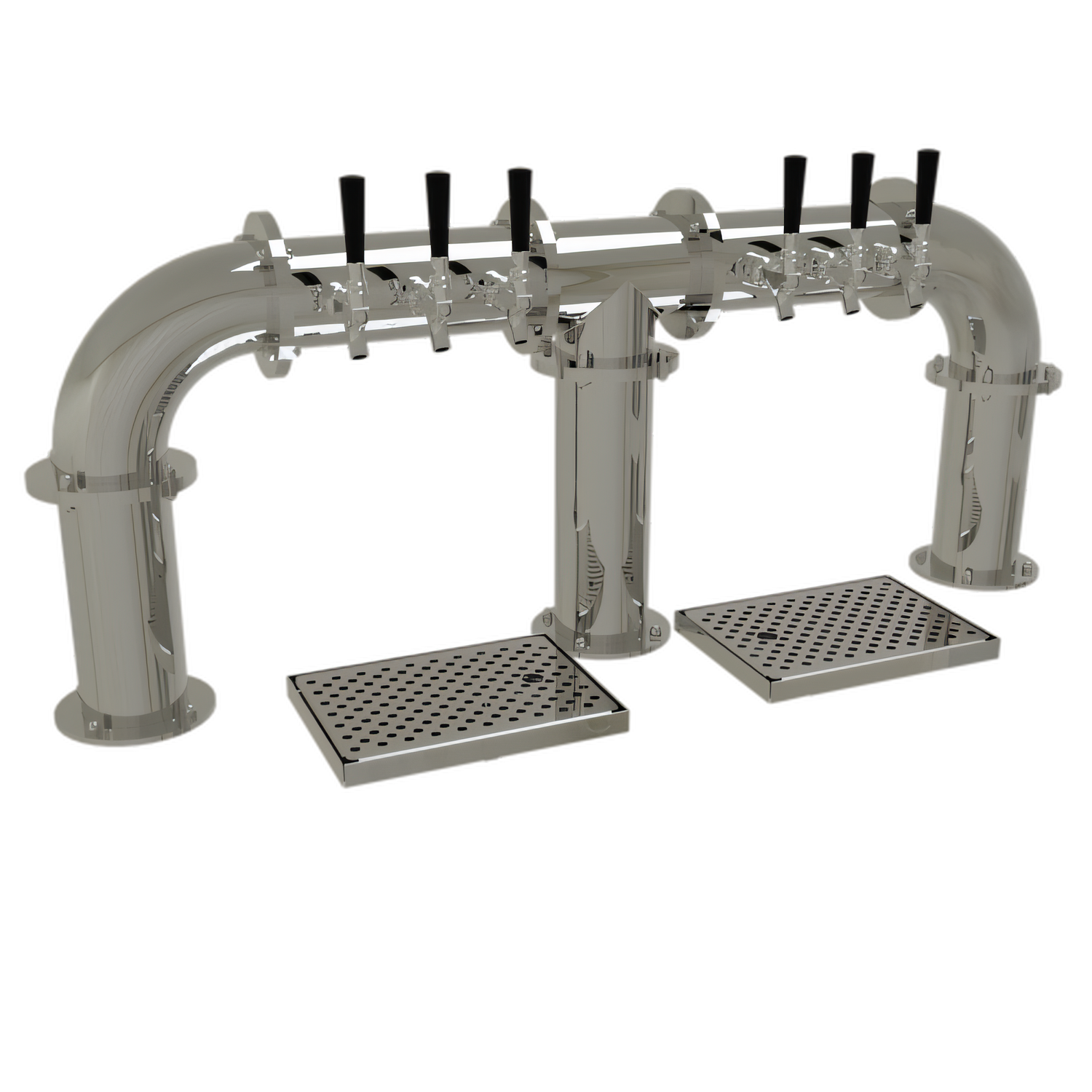 Pipe Bridge Draft Dispensing Tower, countertop, (6) stainless steel faucets (handles not included), air-cooled, (3) 4" columns, surface mount drain pans with removable perforated insert, all stainless steel construction, mirror finish (NOTE: Made to order, not returnable)"