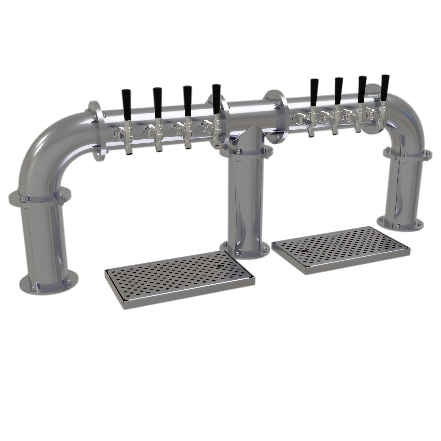 Pipe Bridge Draft Dispensing Tower, countertop, (8) stainless steel faucets (handles not included), air-cooled, (3) 4" columns, surface mount drain pans with removable perforated insert, all stainless steel construction, stainless steel finish (NOTE: Made to order, not returnable)"