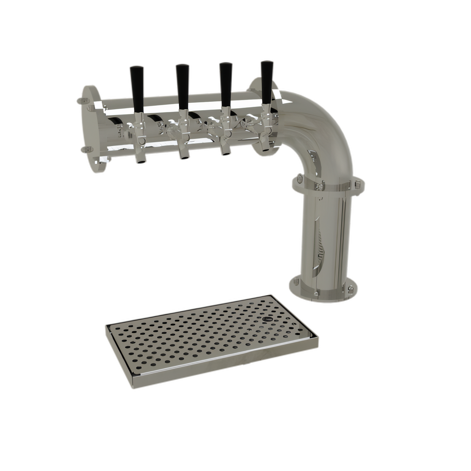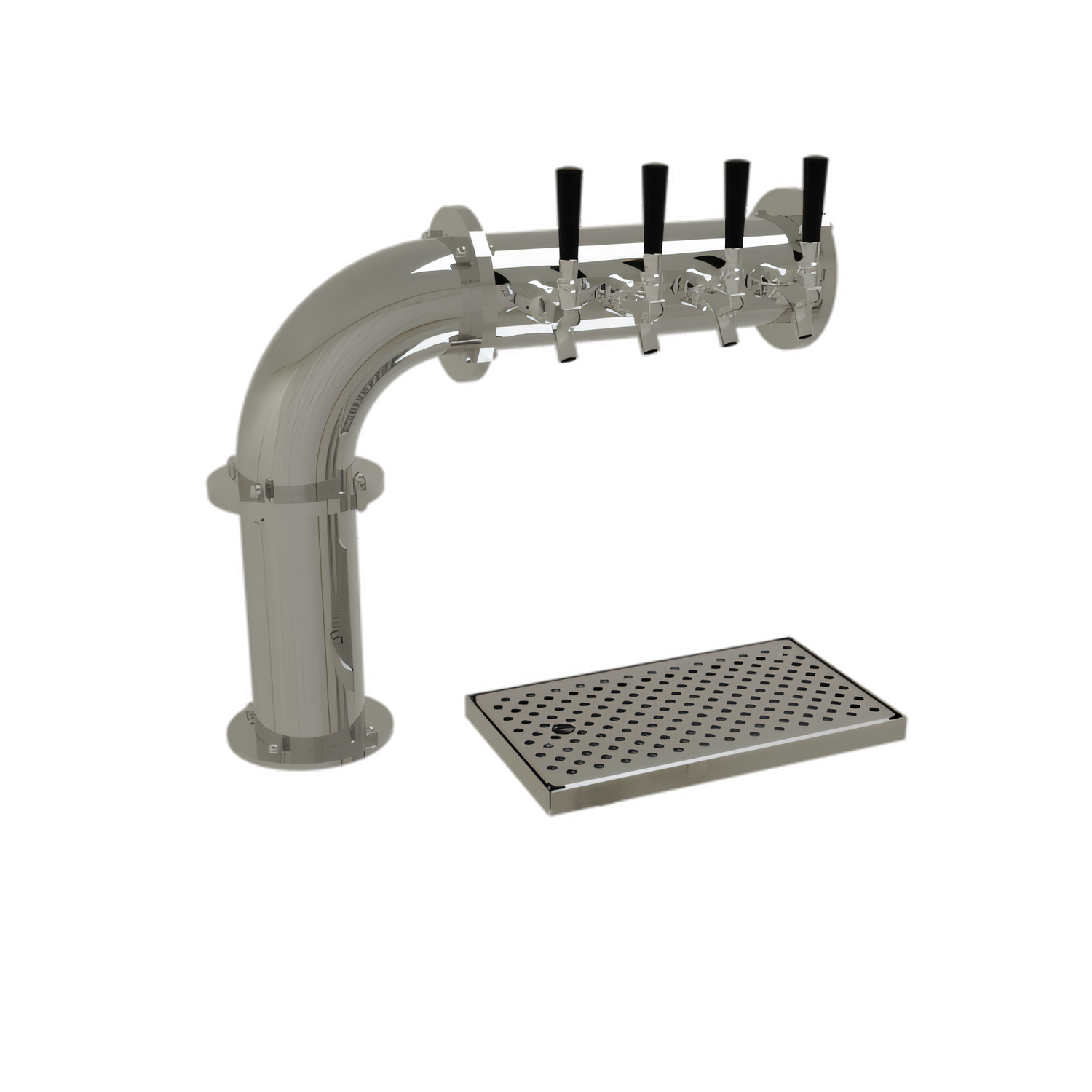 Pipe Cantilever Draft Dispensing Tower, countertop, (4) stainless steel faucets (handles not included), air-cooled, (1) 4" column, surface mount drain pan with removable perforated insert, all stainless steel construction, mirror finish (NOTE: Made to order, not returnable)"
