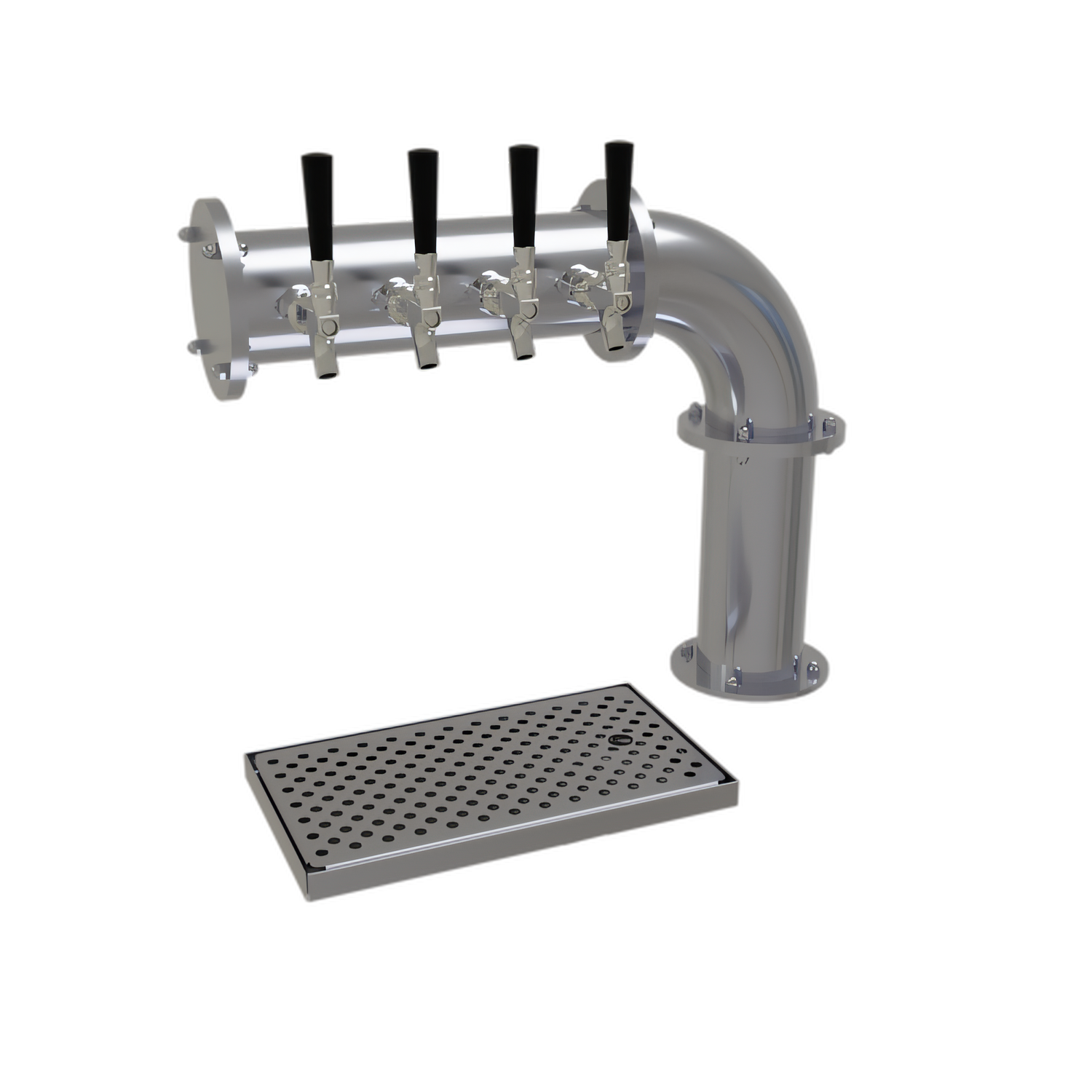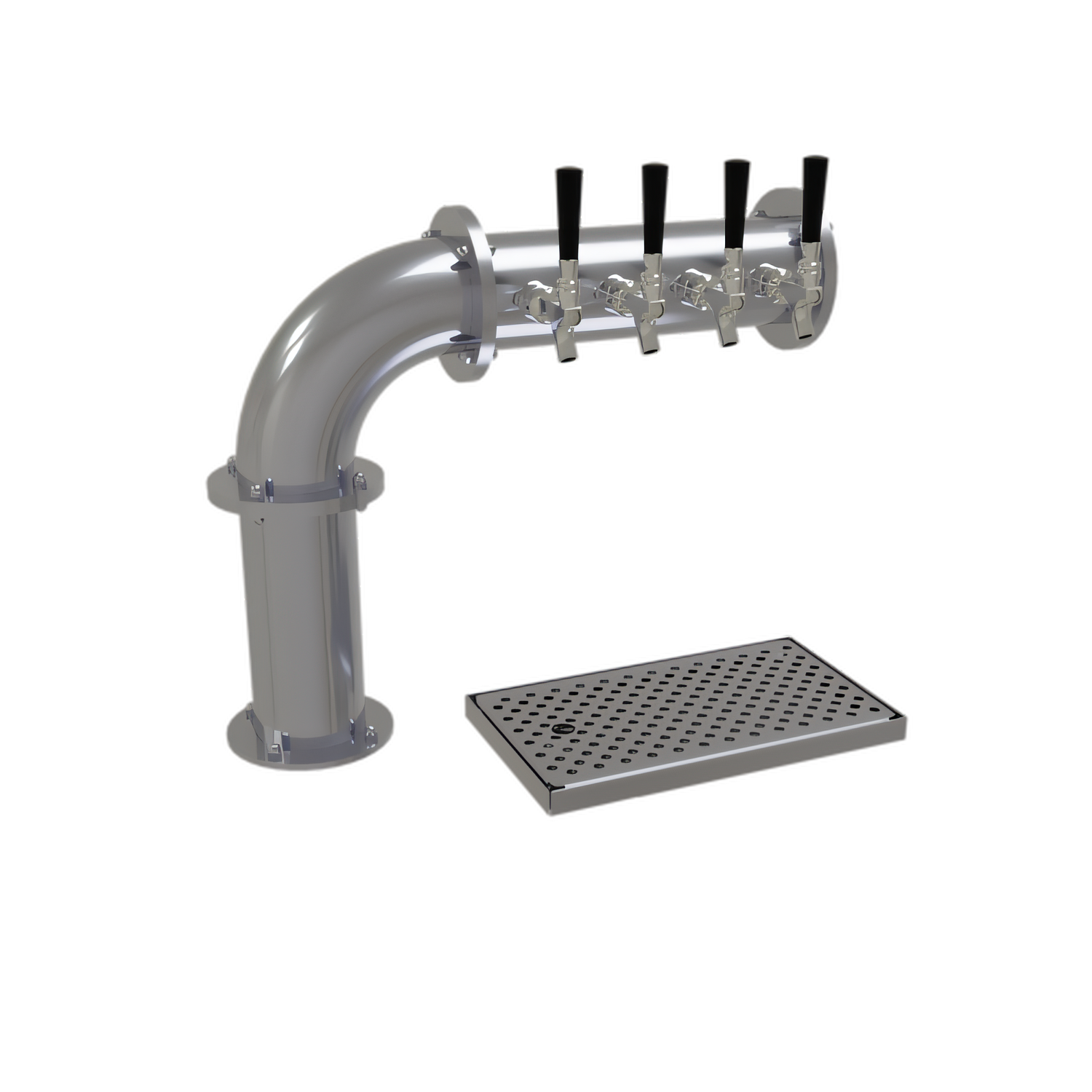 Pipe Cantilever Draft Dispensing Tower, countertop, (4) stainless steel faucets (handles not included), air-cooled, (1) 4" column, surface mount drain pan with removable perforated insert, all stainless steel construction, stainless steel finish (NOTE: Made to order, not returnable)"