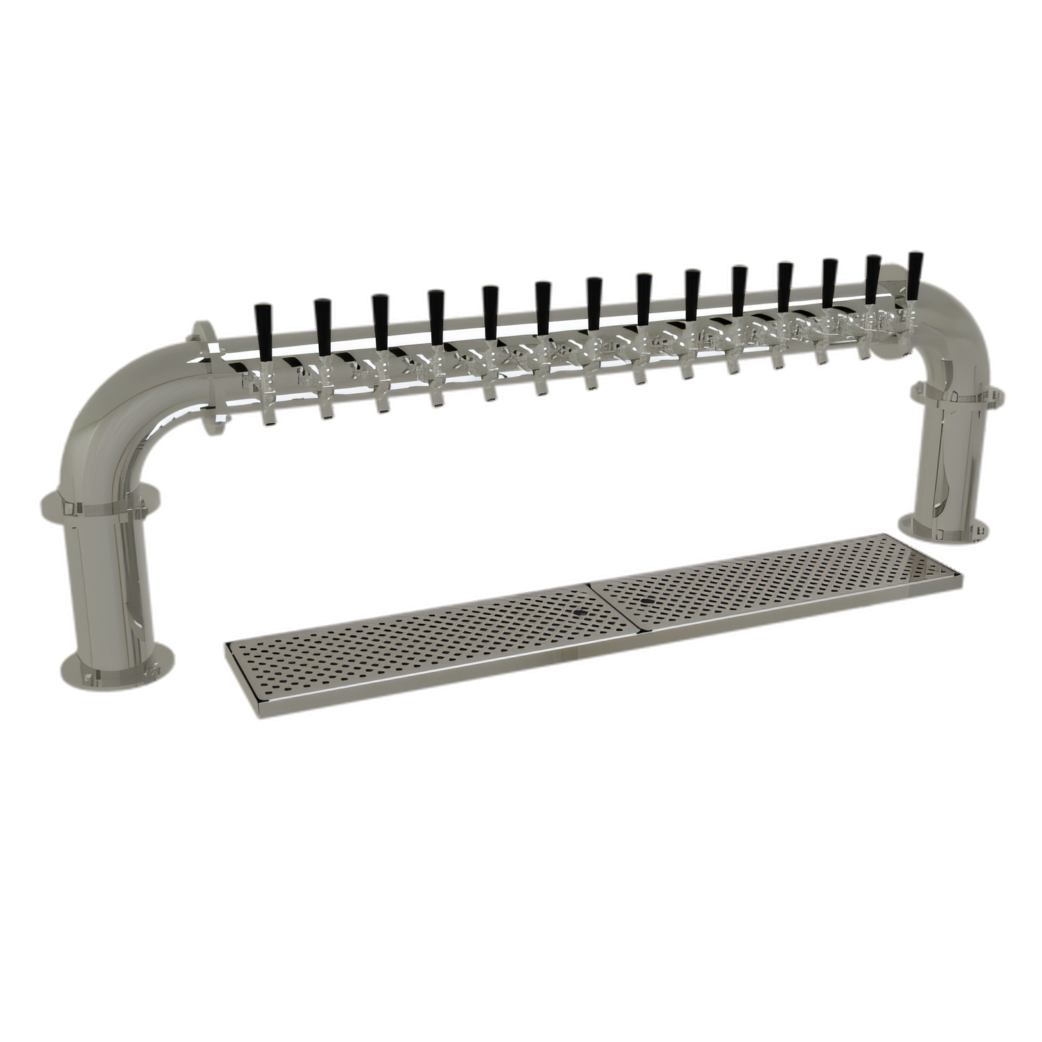 Pipe Pass-Thru Draft Dispensing Tower, countertop, (14) stainless steel faucets (handles not included), glycol-cooled, (2) 4" columns, insulated cold plate assembly, surface mount drain pan with removable perforated inserts, all stainless steel construction, mirror finish (NOTE: Made to order, not returnable)"