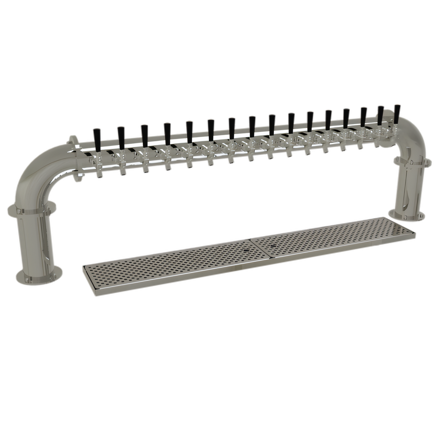 Pipe Pass-Thru Draft Dispensing Tower, countertop, (16) stainless steel faucets (handles not included), air-cooled, (2) 4" columns, surface mount drain pan with removable perforated inserts, all stainless steel construction, mirror finish (NOTE: Made to order, not returnable)"