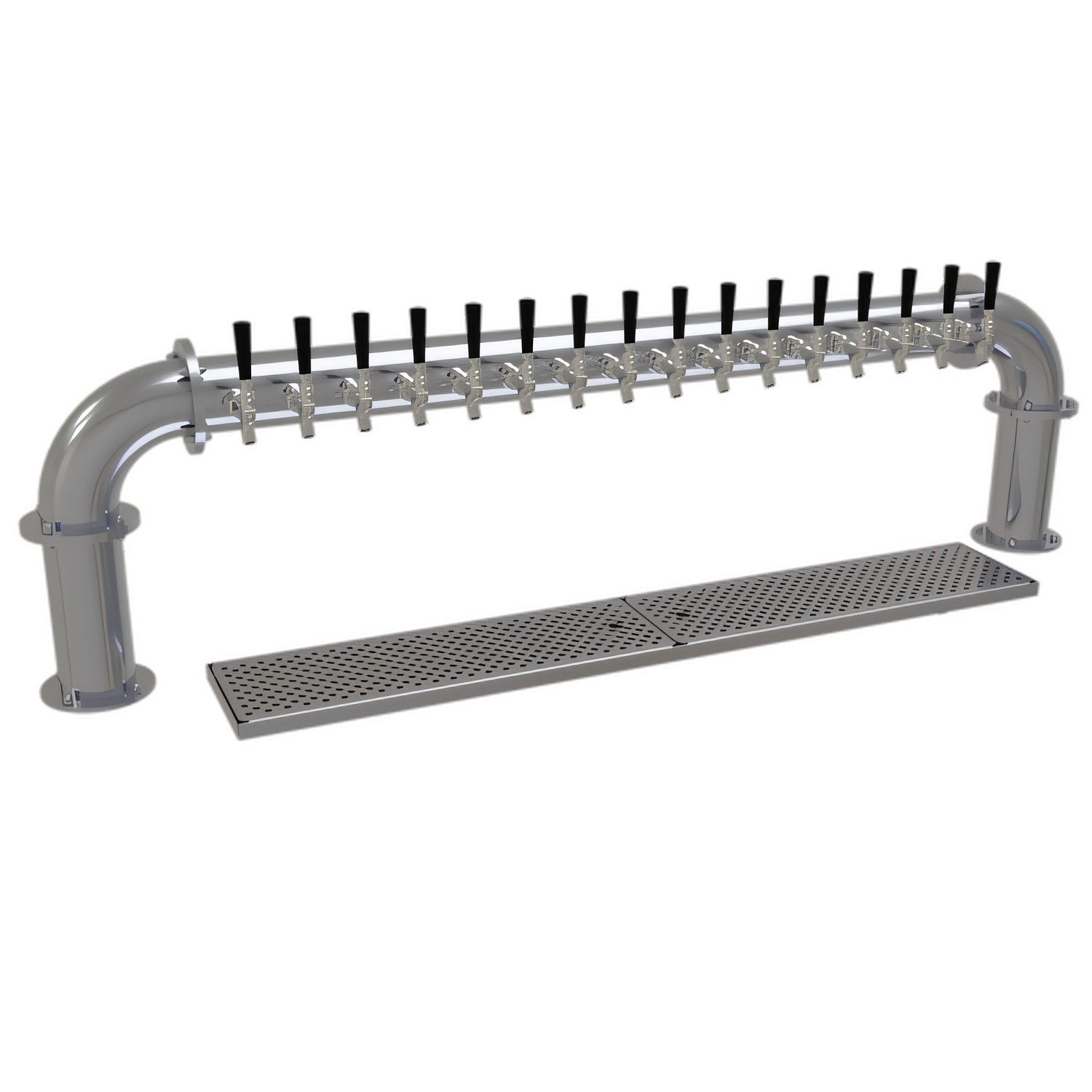 Pipe Pass-Thru Draft Dispensing Tower, countertop, (16) stainless steel faucets (handles not included), air-cooled, (2) 4" columns, surface mount drain pan with removable perforated inserts, all stainless steel construction, stainless steel finish (NOTE: Made to order, not returnable)"
