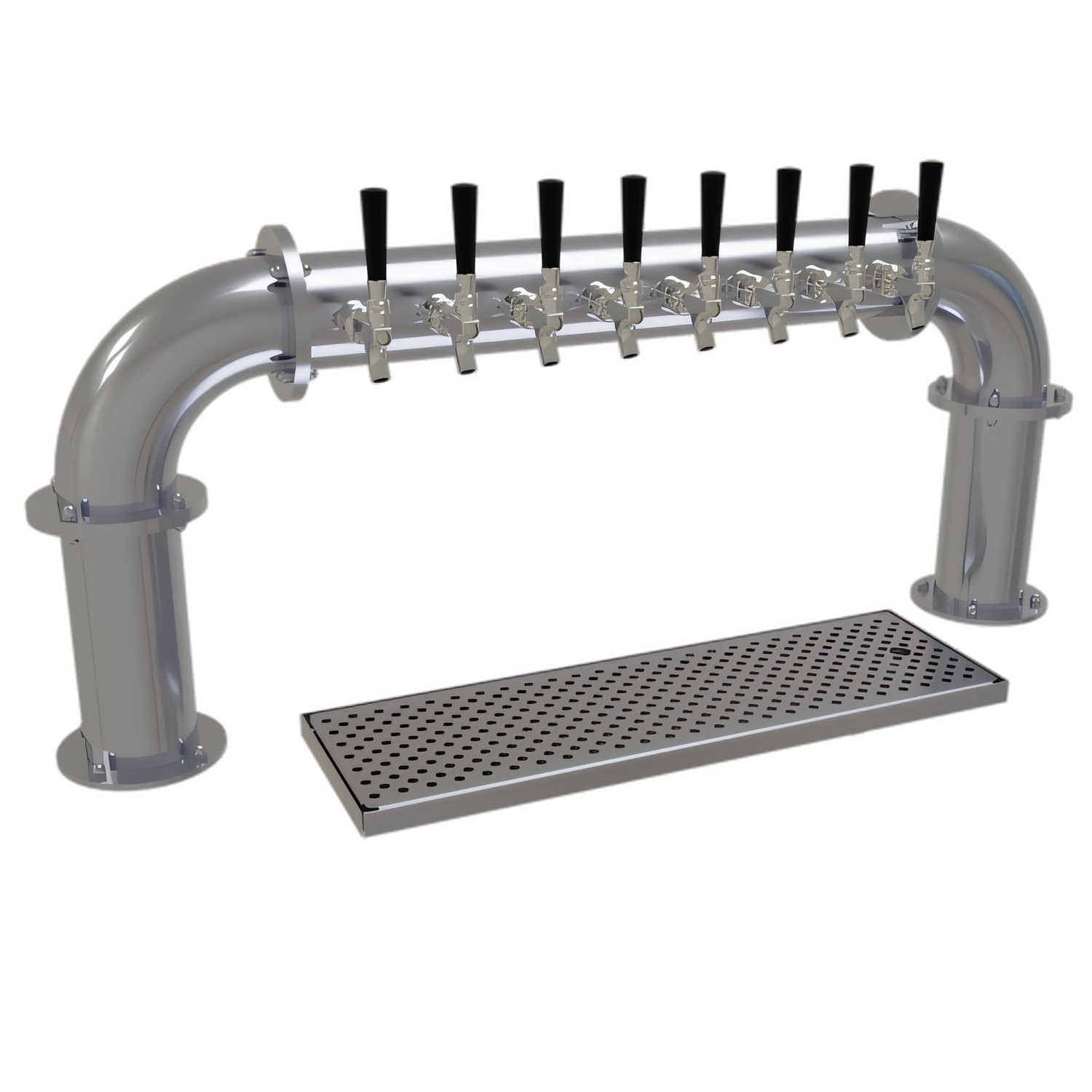 Pipe Pass-Thru Draft Dispensing Tower, countertop, (8) stainless steel faucets (handles not included), air-cooled, (2) 4" columns, surface mount drain pan with removable perforated insert, all stainless steel construction, stainless steel finish (NOTE: Made to order, not returnable)"